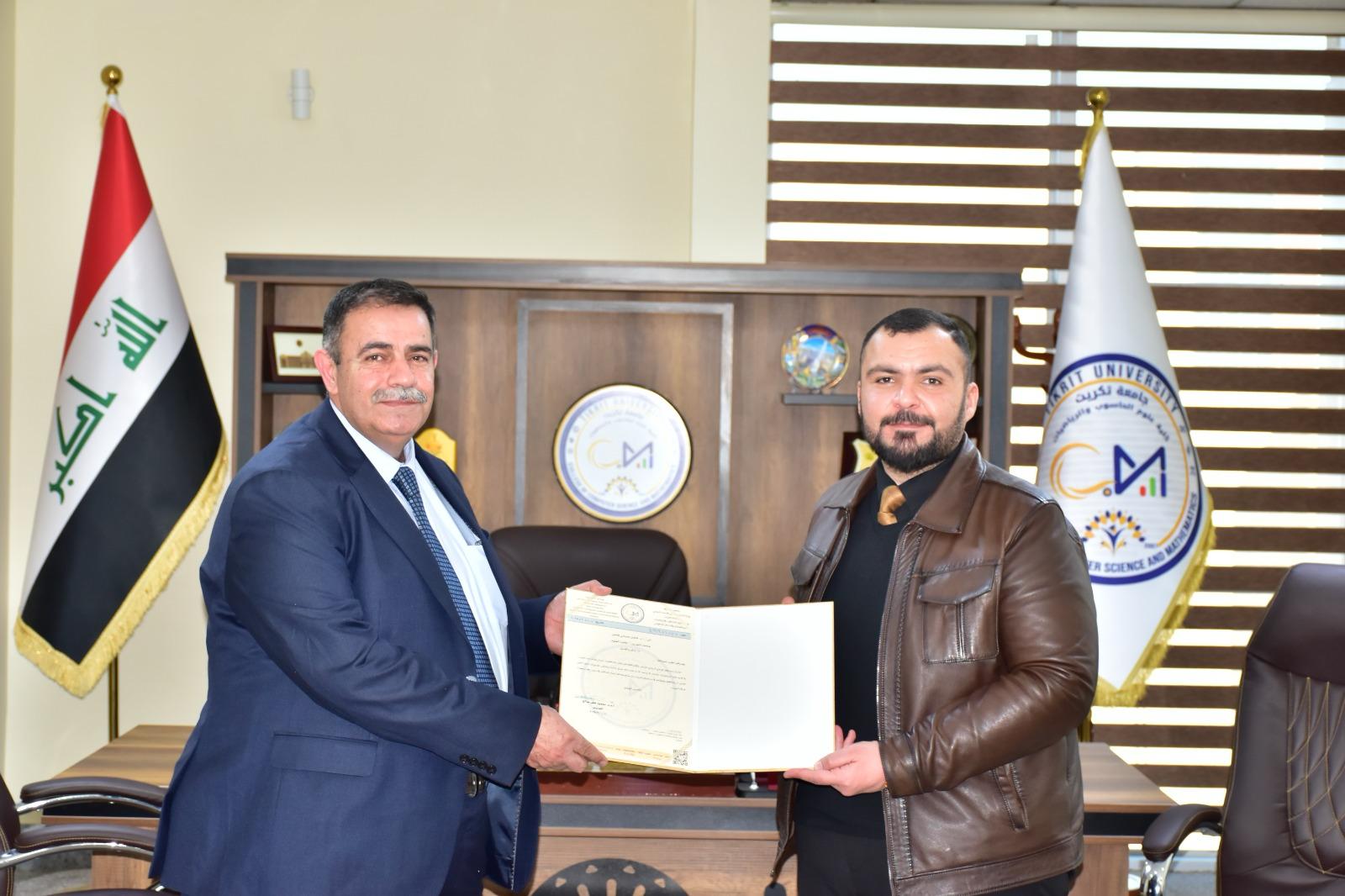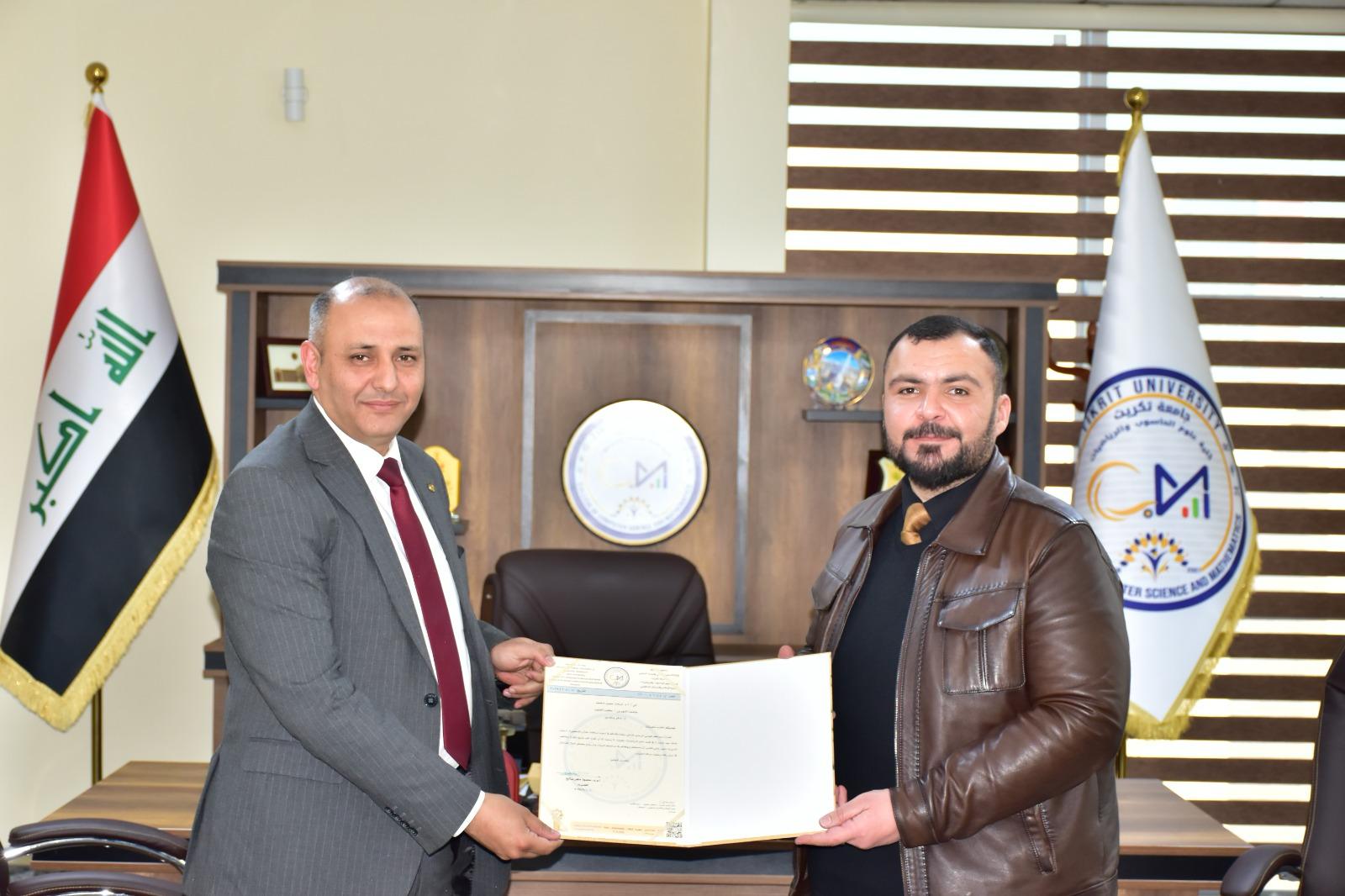 هذا وقد حضر المناقشة الأستاذ الدكتور حسن حسين إبراهيم مساعد رئيس الجامعة للشؤون العلمية و الأستاذ المساعد الدكتور محمود ماهر صالح المحترم عميد كلية علوم الحاسوب والرياضيات، وعدد من التدريسيين وطلبة الدراسات العليا في الكلية، من جانبه قدم السيد عميد الكلية كتابي شكر وتقدير للدكتور أسامة حميد محمد و الدكتور فاضل صبحي فاضل تثميناً لجهوده العلمية في تقييم هذه الرسالة .