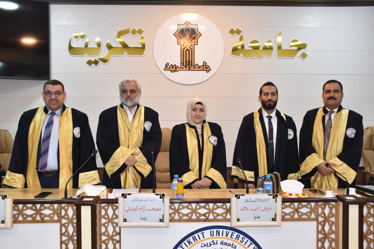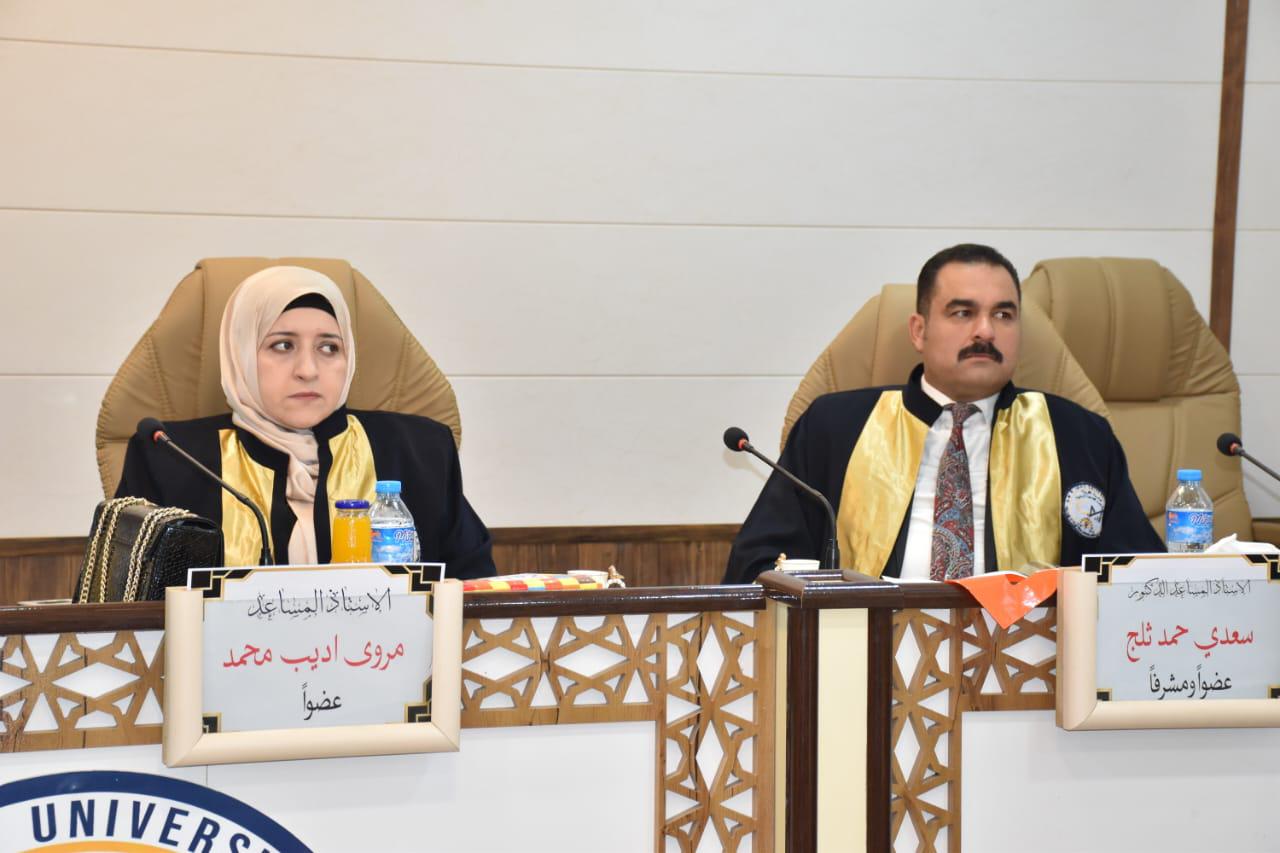 هذا وقد حضر المناقشة عدد من التدريسيين وطلبة الدراسات العليا، من جانبه قدم السيد عميد الكلية الأستاذ المساعد الدكتور محمود ماهر صالح المحترم كتاب شكر وتقدير الدكتور إبراهيم محمد احمد تثميناً لجهوده العلمية في تقييم هذه الرسالة.