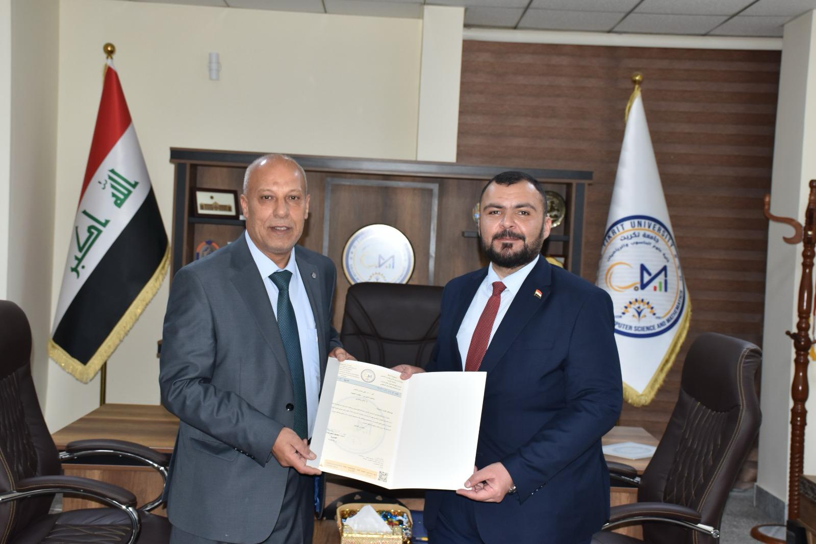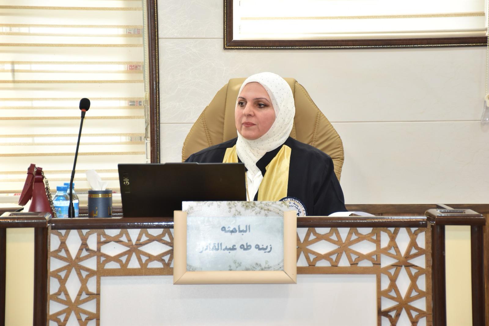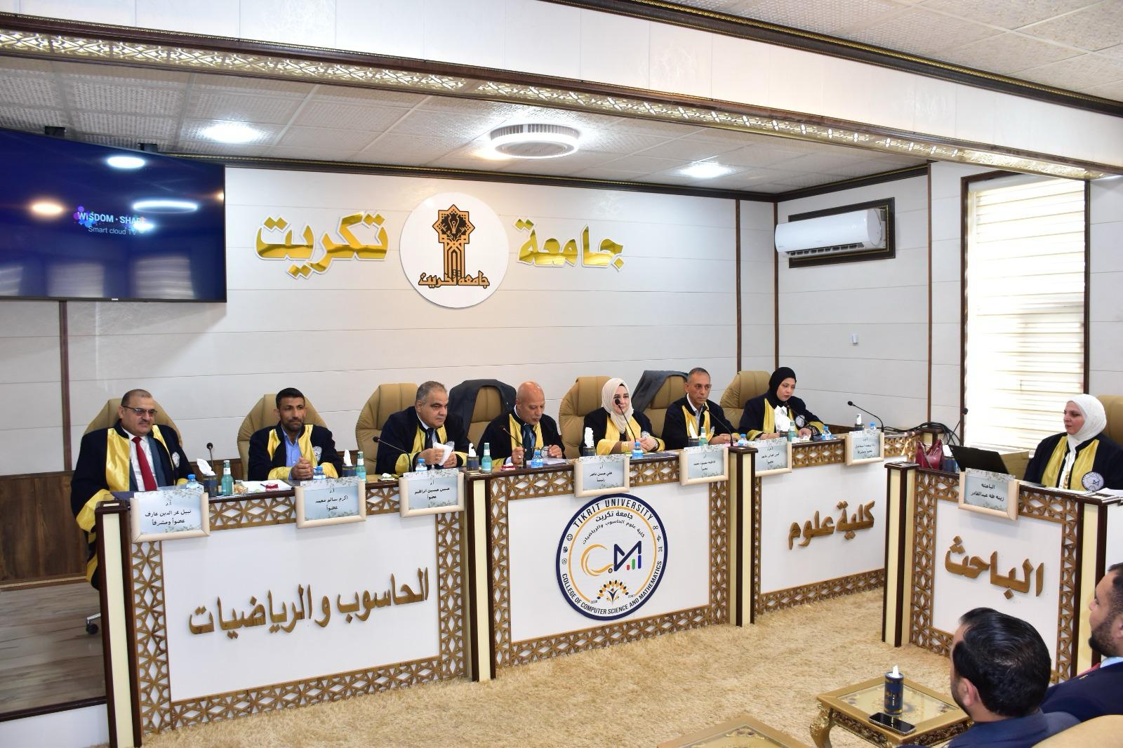 هذا وقد حضر المناقشة السيد مساعد رئيس الجامعة للشؤون الإدارية الأستاذ الدكتور حسين عبد إسماعيل المحترم عميد الكلية الاستاذ المساعد الدكتور محمود ماهر صالح المحترم عميد الكلية وعدد من التدريسيين وطلبة الدراسات العليا ، من جانبه قد السيد عميد الكلية كتب شكر وتقدير للدكتور علي حسن ناصر والدكتور امير صابر ماجد والدكتورة رنا بهجت إسماعيل تثميناً لجهورهم القيمة والمميزة في تقييم هذه الاطروحة .
