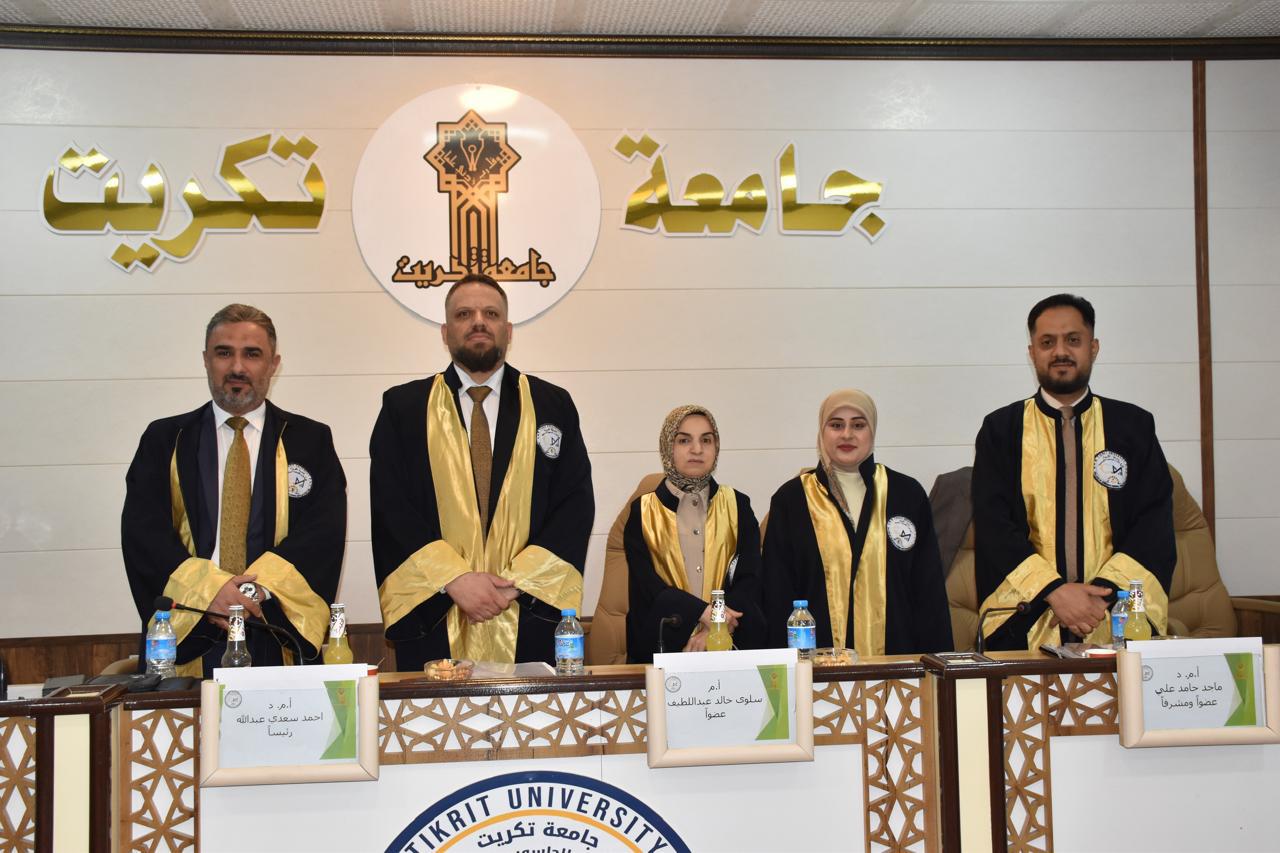 هذا وقد حضر المناقشة عدد من التدريسيين وطلبة الدراسات العليا، من جانبه قدم السيد عميد الكلية الأستاذ المساعد الدكتور محمود ماهر صالح المحترم كتاب شكر وتقدير للدكتور احمد جبار عبيد تثميناً لجهوده العلمية في تقييم هذه الرسالة.