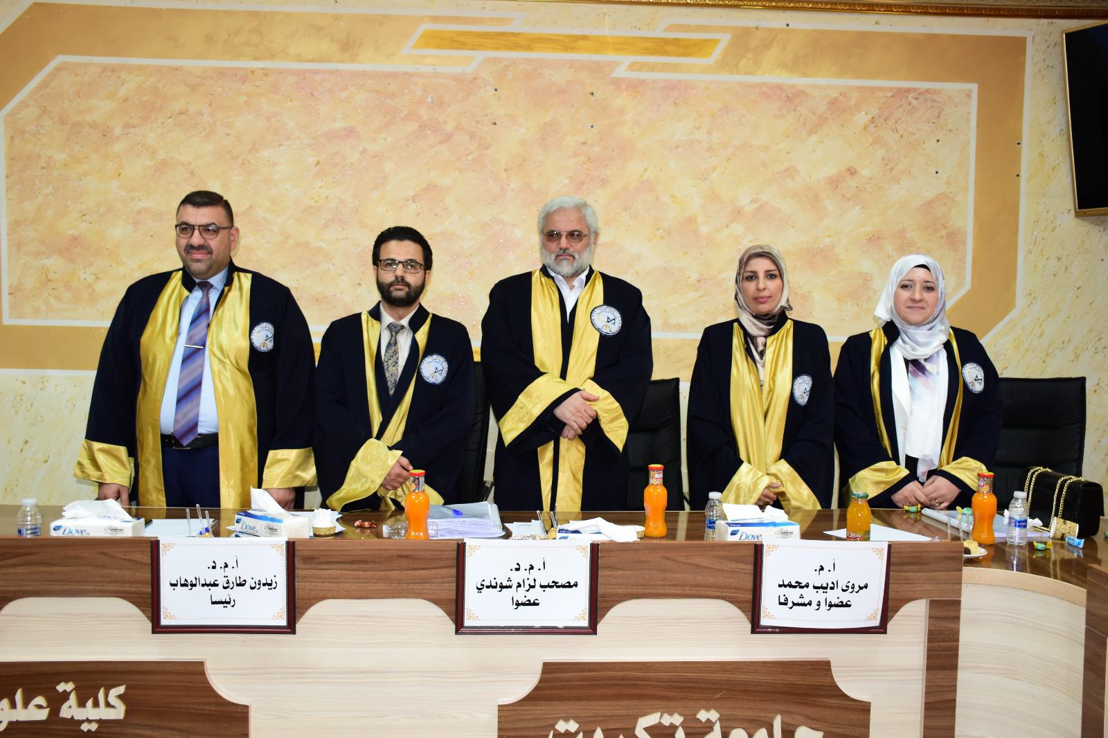 هذا وقد حضر المناقشة السيد عميد الكلية الأستاذ المساعد الدكتور محمود ماهر صالح المحترم و عدد من التدريسيين وطلبة الدراسات العليا، من جانبه قدم السيد عميد الكلية كتاب شكر وتقدير للدكتور إبراهيم محمد احمد تثميناً لجهوده العلمية في تقييم هذه الرسالة.