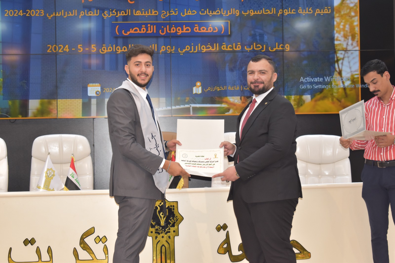 برعاية وحضور الاستاذ الدكتور وعد محمود رؤوف المحترم رئيس جامعة تكريت وإشراف الاستاذ المساعد الدكتور محمود ماهر صالح عميد كلية علوم الحاسوب والرياضيات احتضنت قاعة الخوارزمي اليوم الاحد الموافق 5-5-2024 حفل تخرج طلبة كلية علوم الحاسوب والرياضيات الدفعة 2023-2024 دفعة طوفان الاقصى .