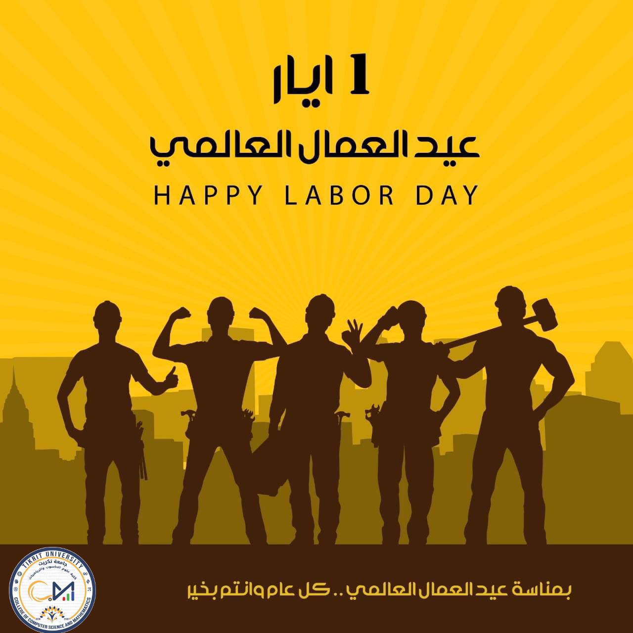 تتقدم كلية علوم الحاسوب والرياضيات - جامعة تكريت متمثلةً بعميدها الأستاذ المساعد الدكتور محمود ماهر صالح المحترم بأسمى التهاني والتبريكات للعمال الكادحين كافة بمناسبة عيدهم الأغر (عيد العمال العالمي) اولئك الذين بنوا الاوطان بعطائهم ولم يبخلوا بجهدهم المخلص في سبيل ازدهاره وتقدمه ، سائلين المولى عز وجل ان يعيده عليهم بالخير والصحة والعافية .