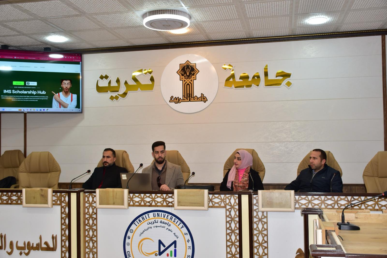 برعاية الاستاذ الدكتور وعد محمود رؤوف المحترم رئيس جامعة تكريت وبإشراف الاستاذ المساعد الدكتور محمود ماهر صالح المحترم عميد كلية علوم الحاسوب والرياضيات واشراف الاستاذ المساعد الدكتور سياف عبدحسين المحترم مدير مركز التعليم المستمر ، اقامت كليتنا وبالتعاون مع مركز التعليم المستمر دورة بعنوان:( المنح والبعثات المتاحة سنوياً لخريجي الرياضيات والحاسبات)اليوم الثلاثاء الموافق 25- 2-2025 ولمدة يومان ،من قبل المحاضرون:
