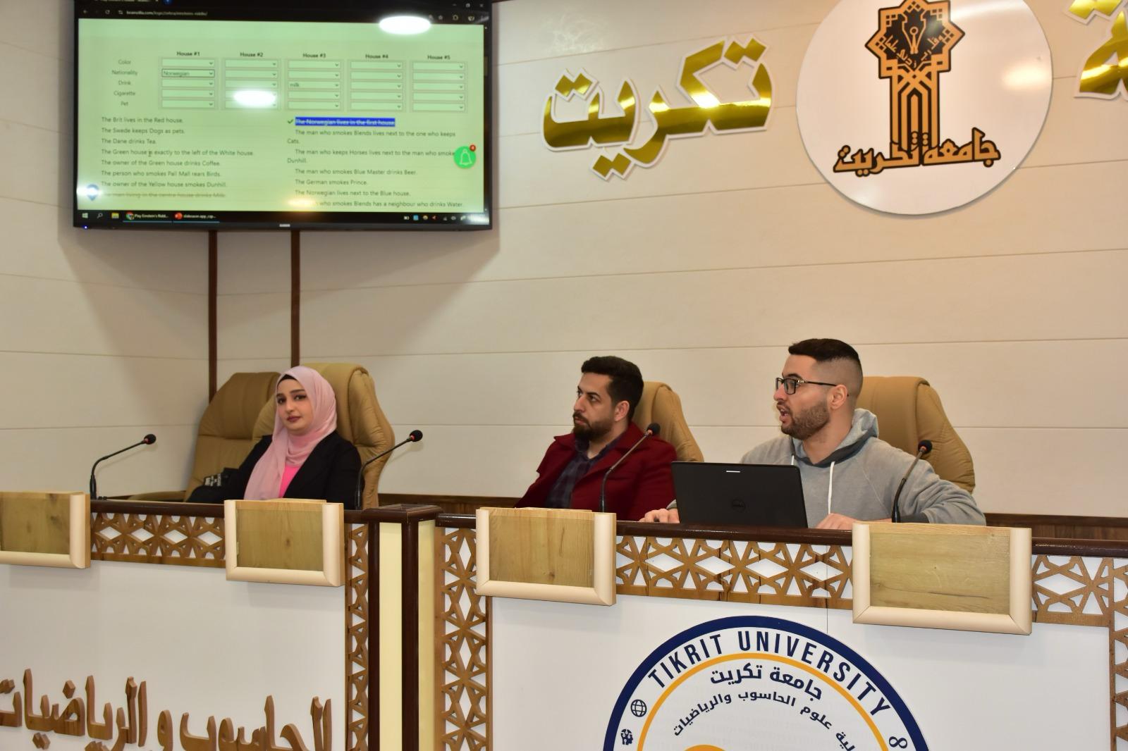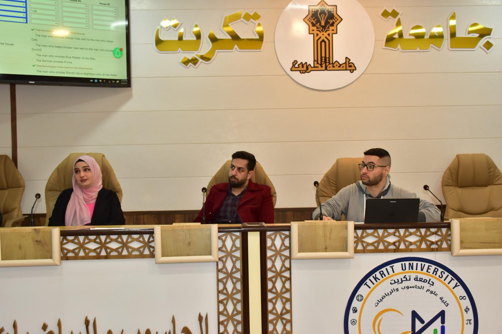 برعاية الاستاذ الدكتور وعد محمود رؤوف المحترم رئيس جامعة تكريت وبإشراف الاستاذ المساعد الدكتور محمود ماهر صالح المحترم عميد كلية علوم الحاسوب والرياضيات واشراف الاستاذ المساعد الدكتور سياف عبدحسين المحترم مدير مركز التعليم المستمر ، اقامت كليتنا وبالتعاون مع مركز التعليم المستمر دورة بعنوان:(المنطق الرياضي) اليوم الثاني الموافق الاربعاء 5- 3-2025 ،من قبل المحاضرون: