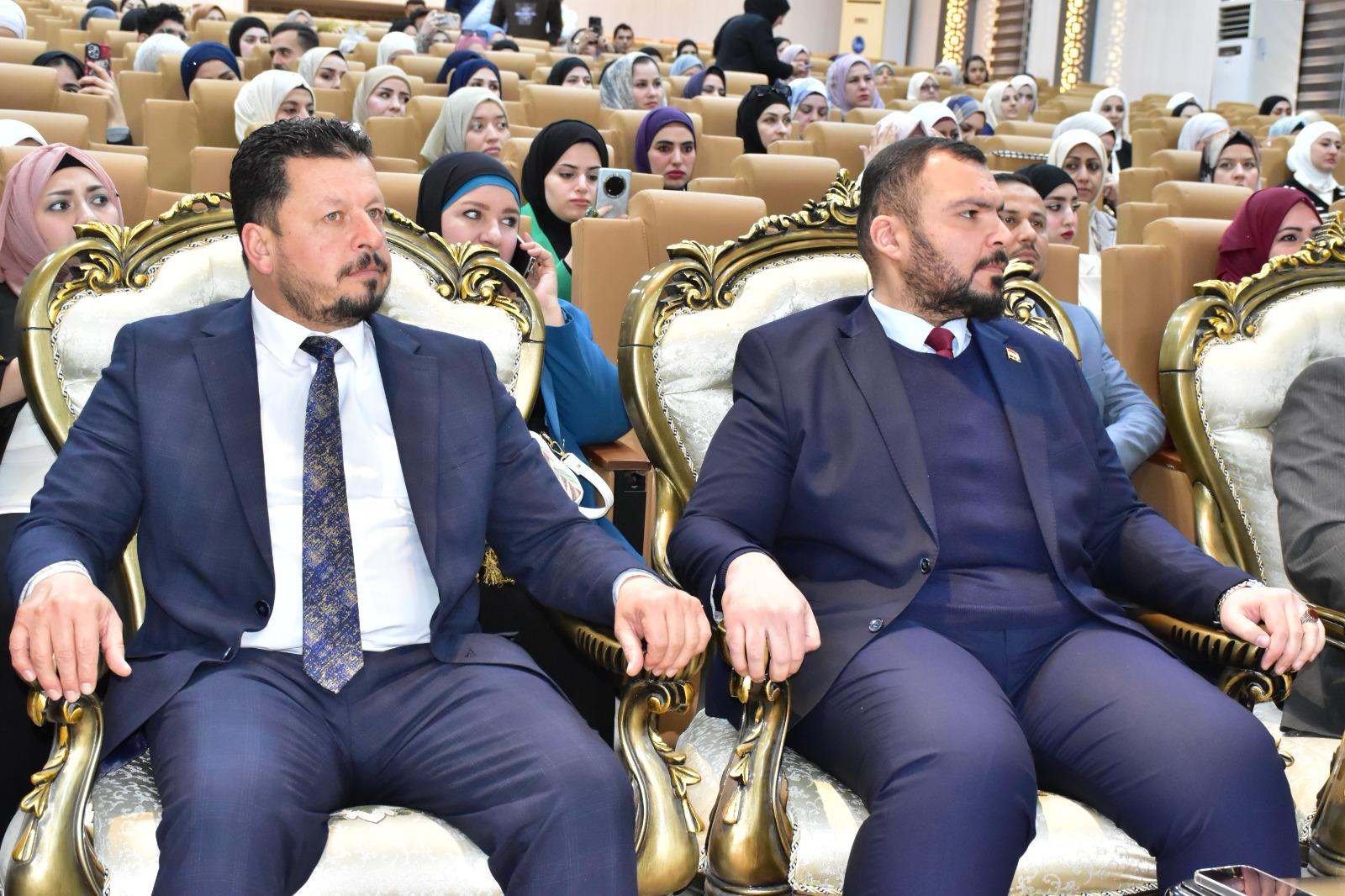 إذ تم خلال الحفل تكريم المدرس المساعد قبس عامر حميد والمدرس المساعد نور وليد خالد بدرع تقديرًا لجهودها المتميزة في دعم وتمكين المرأة داخل الوسط الأكاديمي، ولإسهاماتهن البارزة في خدمة الكلية والمجتمع.