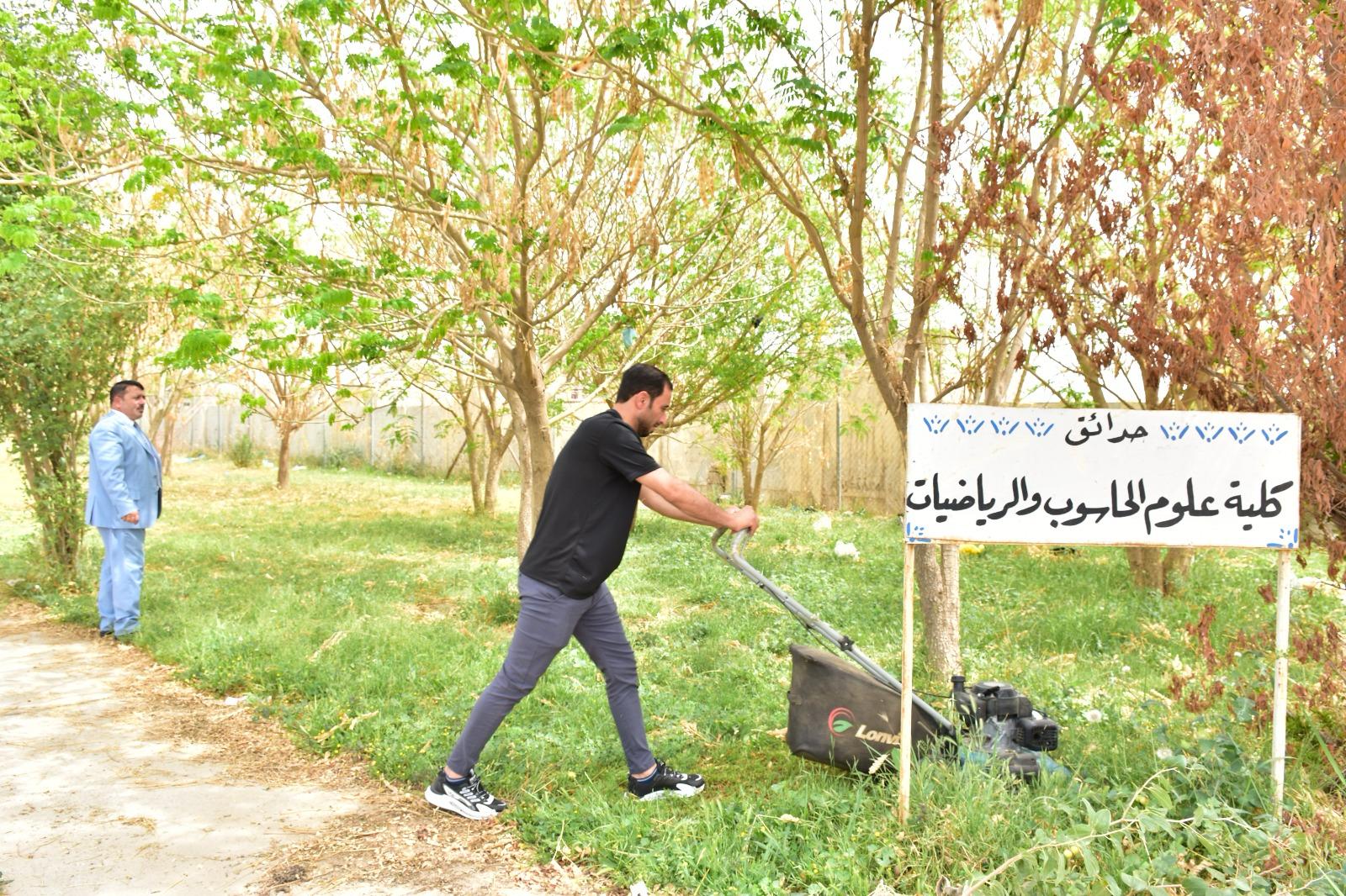 تنفيذًا لتوجيهات السيد رئيس جامعة تكريت الأستاذ الدكتور وعد محمود رؤوف المحترم، وبإشراف السيد عميد الكلية الأستاذ المساعد الدكتور محمود ماهر صالح المحترم، ومتابعة الأستاذ الدكتور زياد محمد عبد الله معاون العميد للشؤون الإدارية، أطلقت كلية علوم الحاسوب والرياضيات حملة شاملة لتنظيف وترتيب الحدائق الخارجية.