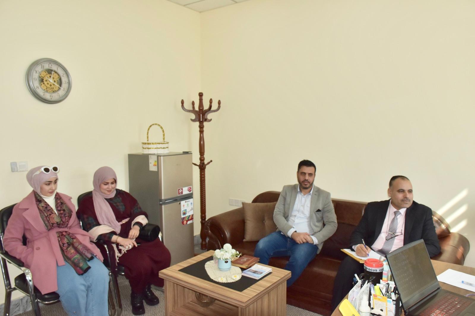 وكان في استقبال الوفد الأستاذ المساعد الدكتور محمود ماهر صالح المحترم عميد الكلية، برفقة عدد من أعضاء الهيئة التدريسية والإدارية، حيث تم تقديم عرض تفصيلي حول البرامج الأكاديمية، والمناهج الدراسية، والبنية التحتية للكلية، بالإضافة إلى استعراض الجهود المبذولة في تطوير البيئة التعليمية وتعزيز البحث العلمي.