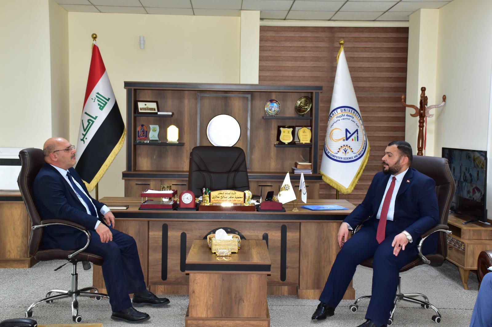 وكان في استقبال اللجنة الوزارية السيد عميد الكلية الأستاذ المساعد الدكتور محمود ماهر صالح المحترم وبحضور السادة معاوني العميد للشؤون العلمية والإدارية، بالإضافة إلى عدد من رؤساء الأقسام والتدريسيين. وقد استهلت اللجنة زيارتها بلقاء تعريفي استعرضت فيه عمادة الكلية رؤيتها ورسالتها وأهدافها من استحداث قسم الذكاء الاصطناعي، وأهميته في دعم خطط الجامعة نحو التميز الأكاديمي والبحثي.