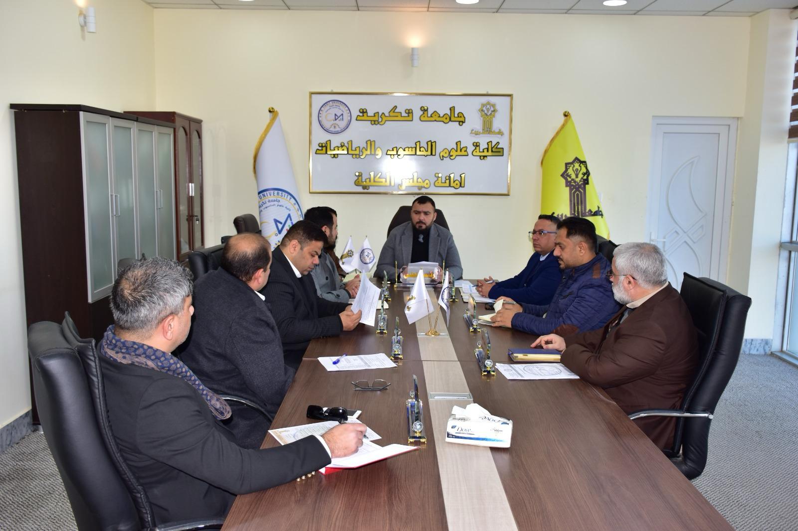 عقد مجلس كلية علوم الحاسوب والرياضيات جلسته الاعتيادية (الخامسة عشر) المفتوحة للعام الدراسي 2024-2025 اليوم الثلاثاء الموافق 24-2-2025 بحضور جميع اعضاء المجلس كافة ، حيث افتتح الأستاذ المساعد الدكتور محمود ماهر صالح عميد الكلية الجلسة بكلمة ترحيبية أشاد فيها بجهود الجميع، هذا وقد ناقش المجلس عدداً من القضايا في جدول أعماله .