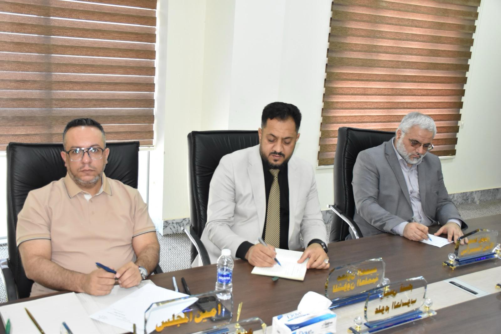 عقد مجلس كلية علوم الحاسوب والرياضيات جلسته المفتوحةح (الرابعة والعشرون) للعام الدراسي 2024-2025 اليوم الثلاثاء الموافق 17-6-2025، وافتتح الأستاذ المساعد الدكتور محمود ماهر صالح عميد الكلية الجلسة بكلمة ترحيبية أشاد فيها بجهود الجميع، هذا وقد ناقش المجلس عدداً من القضايا في جدول أعماله.