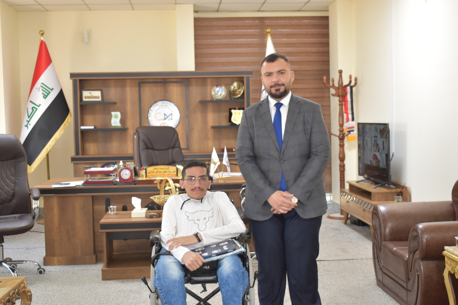 التقى الاستاذ المساعد الدكتور محمود ماهر صالح المحترم بمجموعة من الطلبة المتميزين في قسم علوم الحاسوب اليوم الموافق 18-4-2024 حيث رحب السيد العميد بالطلبة واشاد بجهودهم العلمية الرائعة التي تحقق اضافة متميزة للجامعة والمجتمع في اطار دورها المجتمعي ، مؤكداً على دعمه الكامل لطلبة الكلية وتشجيعهم لرفع اسم الجامعة والكلية على مستوى الجامعات الاخرى .