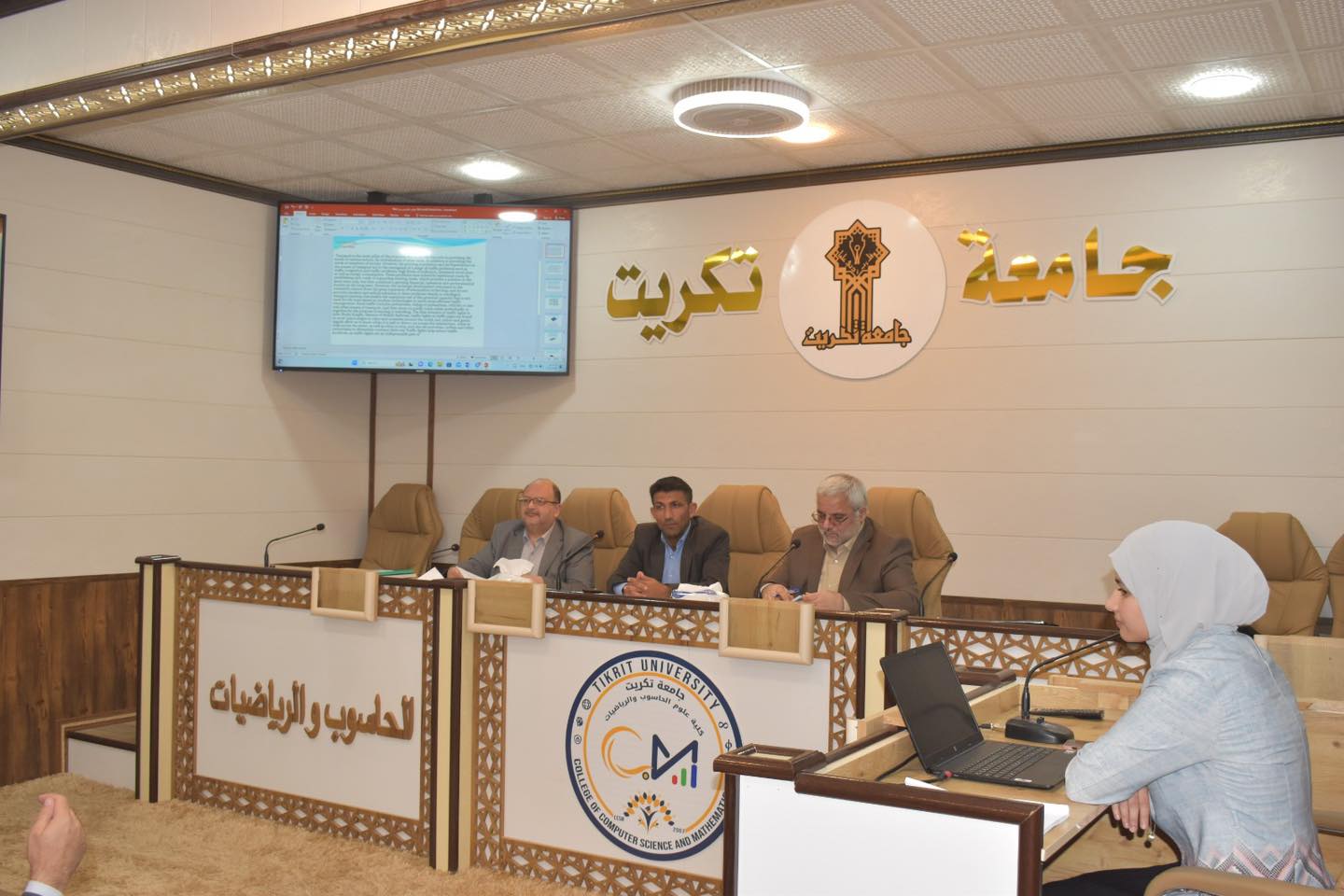 بإشراف الاستاذ المساعد الدكتور محمود ماهر صالح عميد كلية علوم الحاسوب والرياضيات و استكمالا للمنهج العلمي والخطة المتبعة في تطوير البحوث و تاهيل الطلبة للدخول الى سوق العمل. تم اليوم الموافق الاربعاء 13-3-2024 المؤتمر الطلابي لبحوث تخرج المرحلة الرابعة لقسم علوم الحاسوب وقسم علوم الرياضيات وبحضور نخبة من تدريسيي القسم ، استعرض الطلبة مشاريعهم بواسطة وما توصلوا اليه من نتائج علمية و دونوا كل الملاحظات التي ابدتها اللجنة المناقشة استعدادا للمناقشات النهائية على مستوى الجامعة وحسب التوقيتات الرسمية.