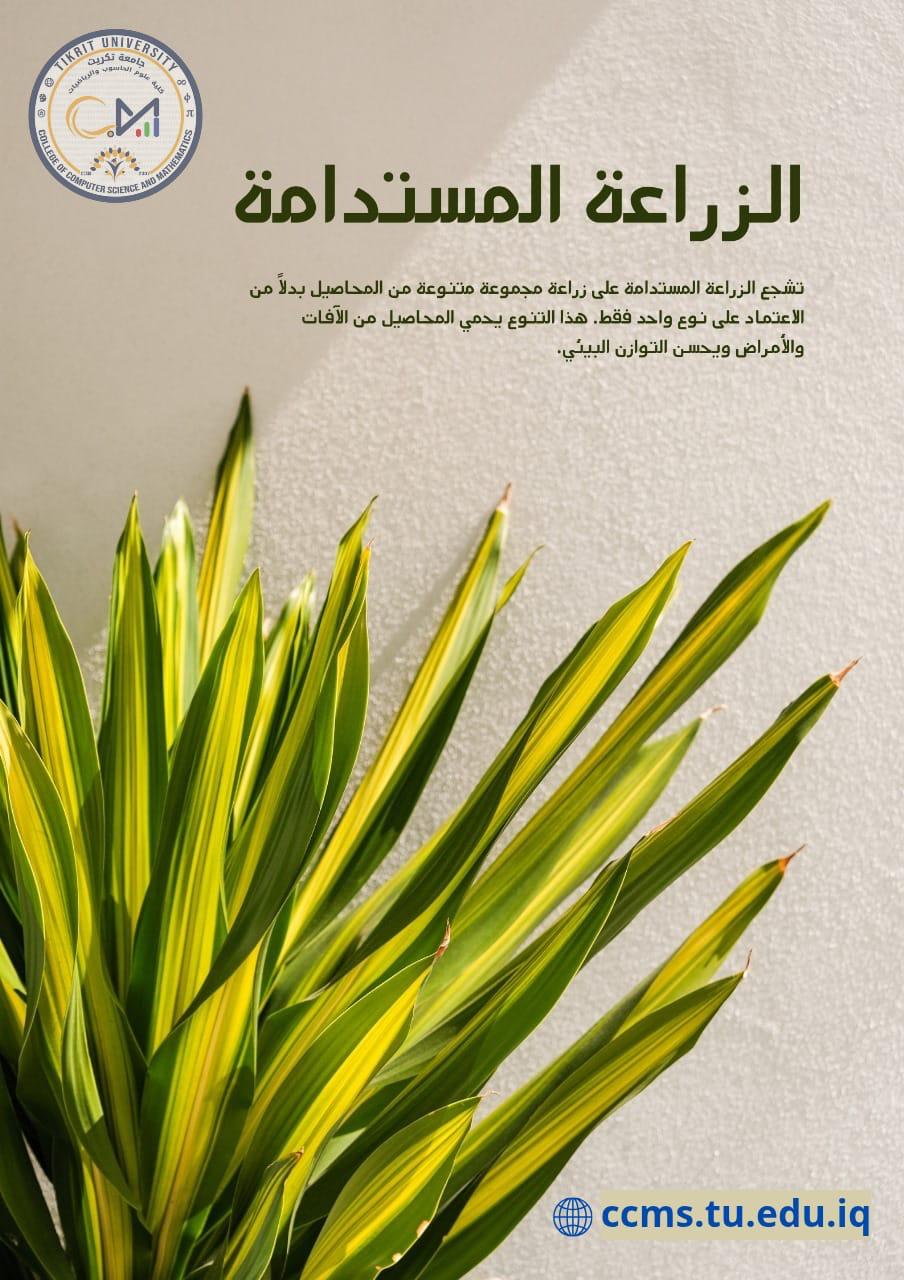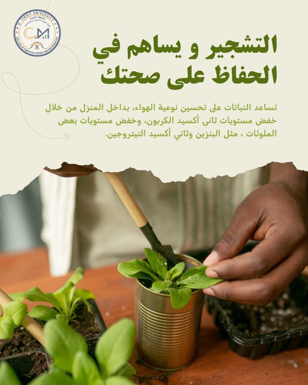برعاية الأستاذ الدكتور وعد محمود رؤوف المحترم رئيس جامعة تكريت، وبإشراف كل من الأستاذ المساعد الدكتور محمود ماهر صالح المحترم عميد كلية علوم الحاسوب والرياضيات والأستاذ المساعد الدكتور سياف عبد حسين المحترم مدير مركز التعليم المستمر وفي إطار حرص كليتنا على تعزيز الوعي البيئي ونشر ثقافة التشجير، أقامت كليتنا ندوة بمناسبة يوم التشجير الوطني، وذلك بهدف تسليط الضوء على أهمية التشجير في تحسين البيئة، وتقليل التلوث، ودوره في التنمية المستدامة.