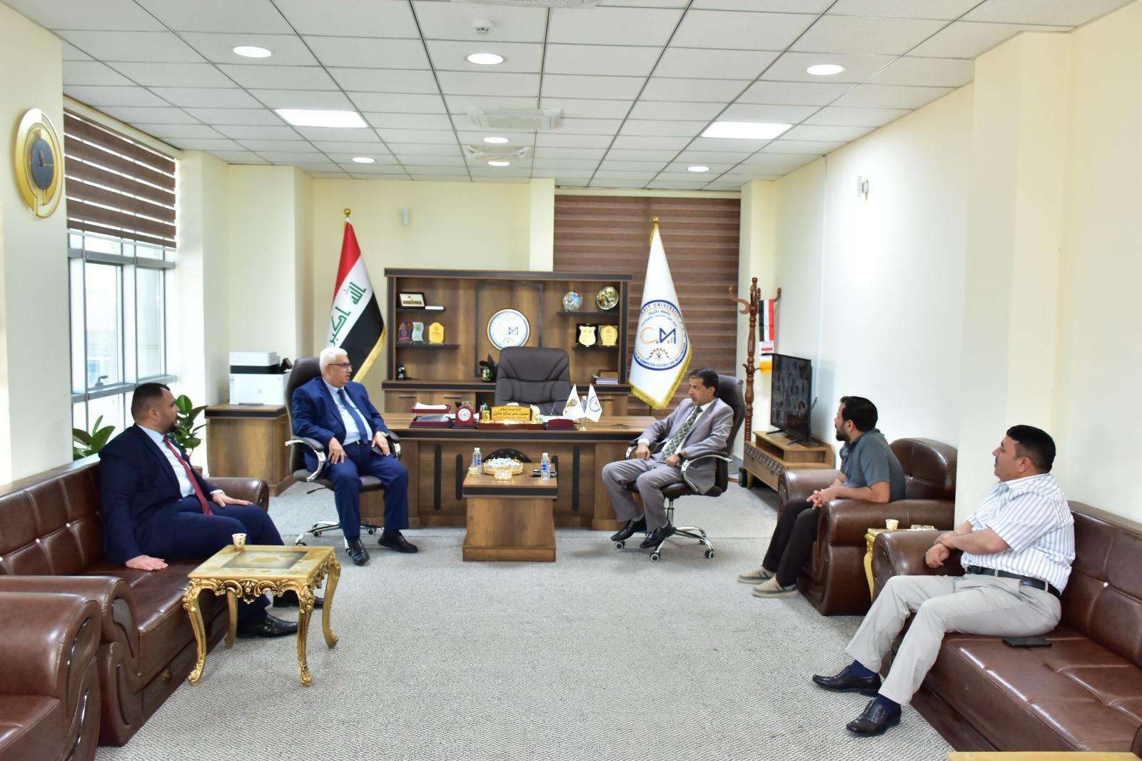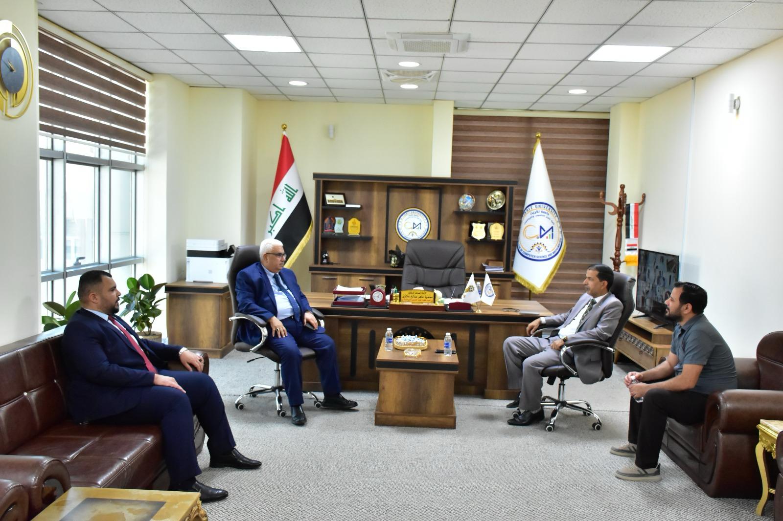وقد رحّب السيد عميد الكلية بالضيف الكريم، مشيداً بمسيرته العلمية وإسهاماته الأكاديمية خلال فترة رئاسته لجامعة كركوك، ومؤكداً على أهمية مثل هذه الزيارات في دعم مسيرة التعليم العالي وترسيخ مبدأ الشراكة والتواصل بين الجامعات العراقية .
