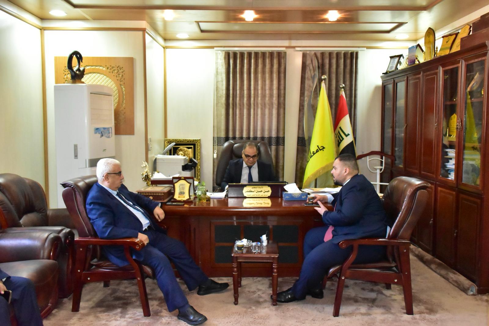 وجرت الزيارة برفقة الأستاذ الدكتور انور فارس عبد المحترم عميد كلية العلوم الإسلامية، حيث شهد اللقاء مناقشة عدد من المحاور المتعلقة بتطوير الأداء الجامعي، وآليات تعزيز جودة التعليم والبحث العلمي بين الكليات.