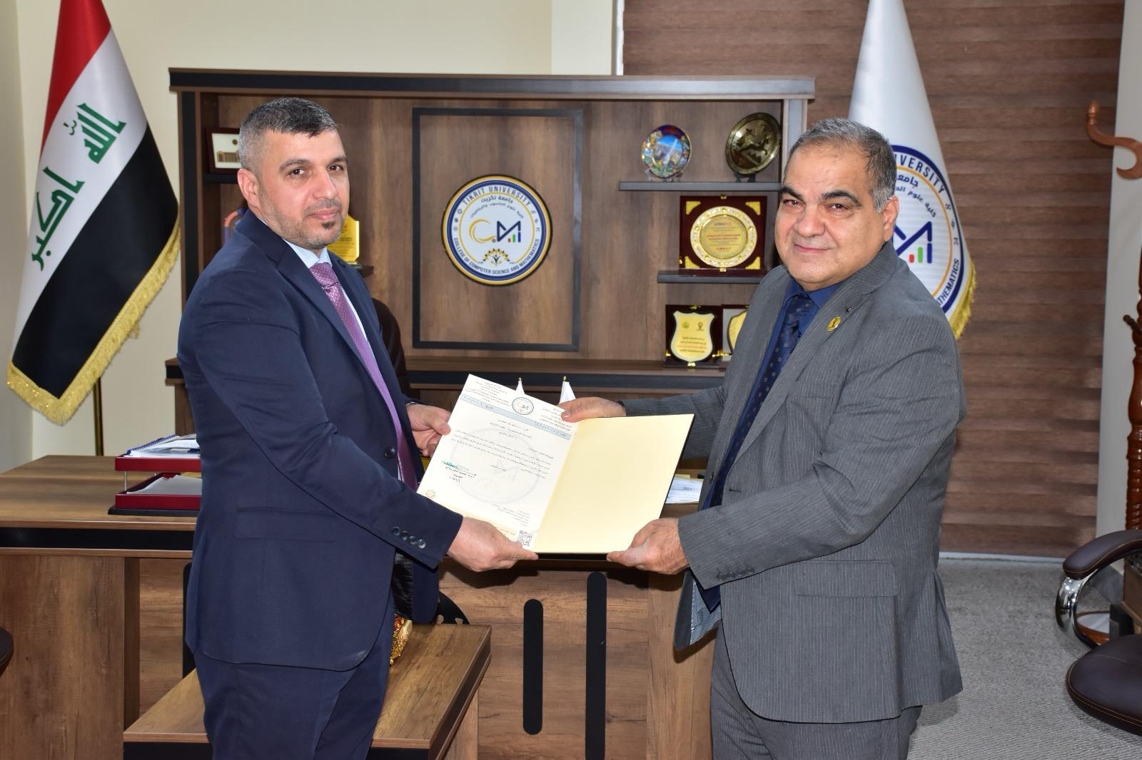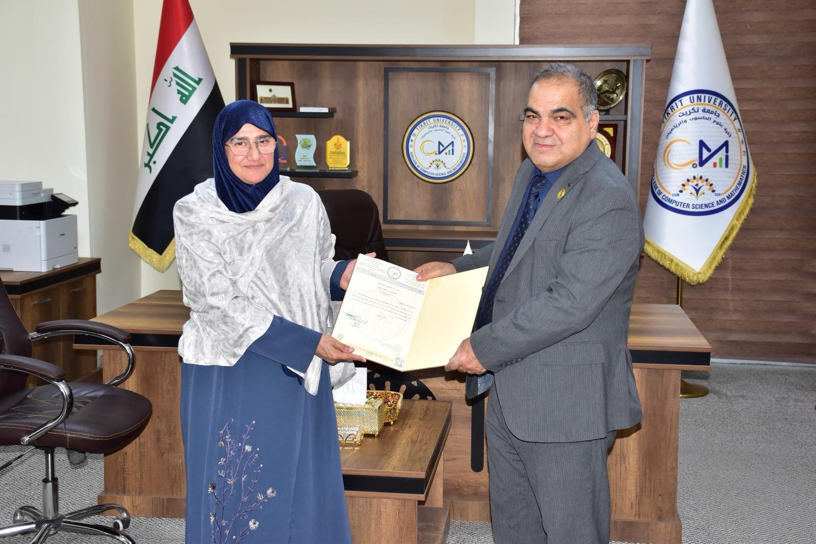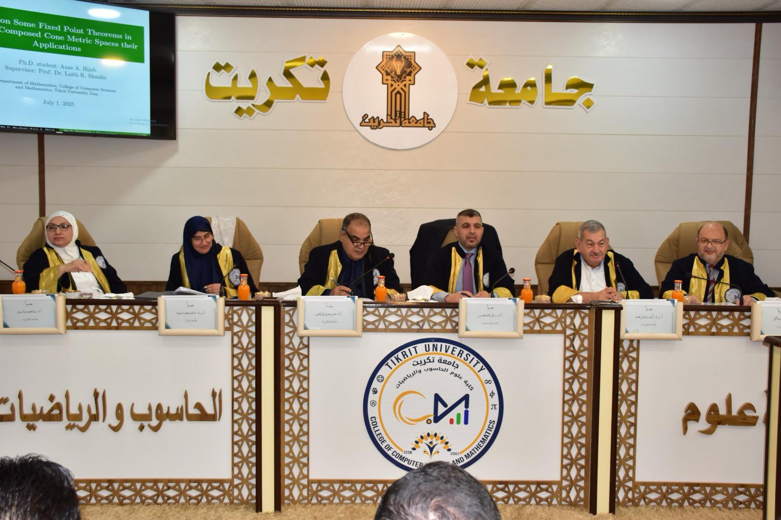 هذا وقد حضر المناقشة عميد كلية علوم الحاسوب والرياضيات الأستاذ المساعد الدكتور محمود ماهر صالح المحترم وعميد كلية التربية للعلوم الإنسانية الأستاذ الدكتور عماد حميد حمد المحترم وعميد كلية هندسة النفط الأستاذ المساعد الدكتور غسان حمد عبدالله المحترم وعدد من التدريسيين وطلبة الدراسات العليا في الكلية، ومن جانبه قدمت عمادة الكلية كتب شكر وتقدير للدكتور سالم داود محسن و الدكتورة فاطمة محمد عبود قدمها الأستاذ الدكتور حسن حسين إبراهيم المحترم مساعد رئيس الجامعة للشؤون العلمية، تثميناً لجهودهم العلمية في تقييم هذه الاطروحة .