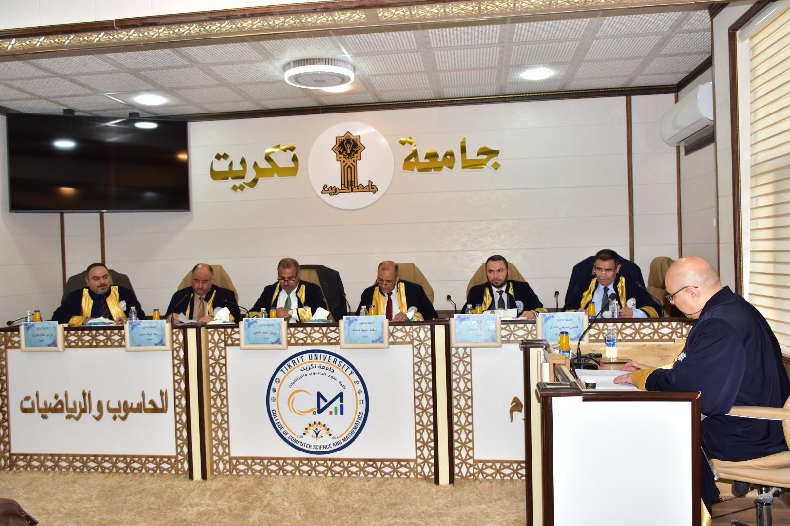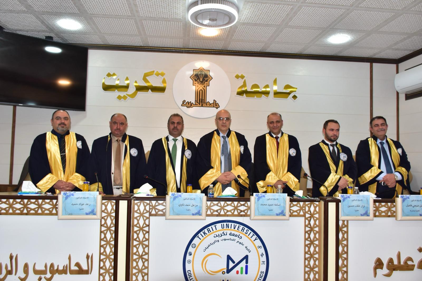 هذا وقد حضر المناقشة الأستاذ الدكتور حسن حسين إبراهيم مساعد رئيس الجامعة للشؤون العلمية و الأستاذ المساعد الدكتور محمود ماهر صالح المحترم عميد كلية علوم الحاسوب والرياضيات، وعدد من التدريسيين وطلبة الدراسات العليا في الكلية، من جانبه قدم السيد عميد الكلية كتابي شكر وتقدير للدكتور أسامة حميد محمد و الدكتور فاضل صبحي فاضل تثميناً لجهوده العلمية في تقييم هذه الرسالة .