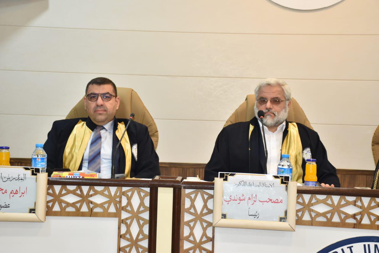 هذا وقد حضر المناقشة عدد من التدريسيين وطلبة الدراسات العليا، من جانبه قدم السيد عميد الكلية الأستاذ المساعد الدكتور محمود ماهر صالح المحترم كتاب شكر وتقدير الدكتور إبراهيم محمد احمد تثميناً لجهوده العلمية في تقييم هذه الرسالة.