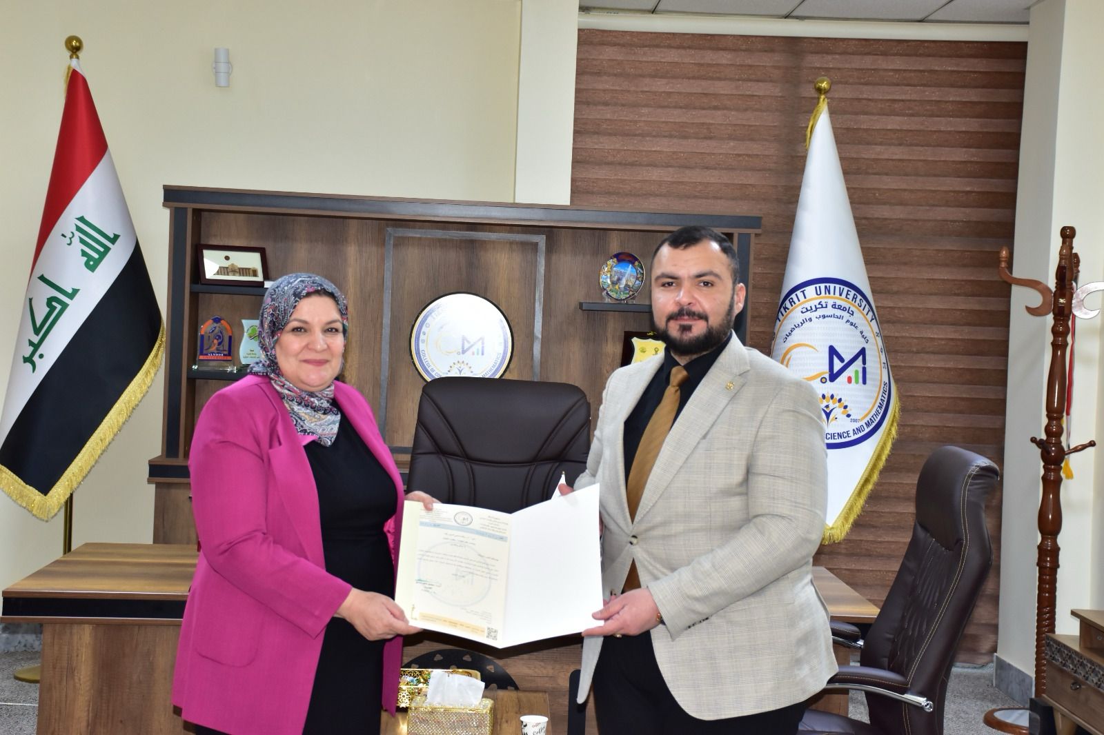 هذا وقد حضر المناقشة السيد عميد الكلية الأستاذ المساعد الدكتور محمود ماهر صالح المحترم وعدد من التدريسيين وطلبة الدراسات العليا ، ومن جانبه قدم السيد عميد الكلية كتب شكر وتقدير للدكتورة وفاء محي الدين طه و الدكتور قاسم عباس حسين تثميناً لجهودهم العلمية المميزة في تقييم هذه الرسالة .