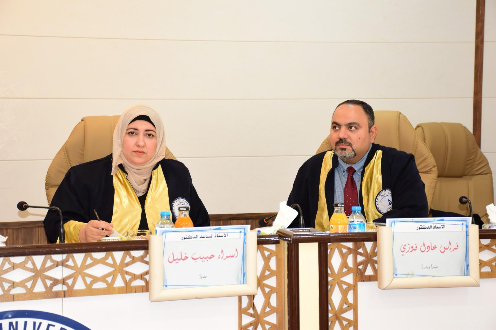 هذا وقد حضر المناقشة عدد من التدريسيين وطلبة الدراسات.