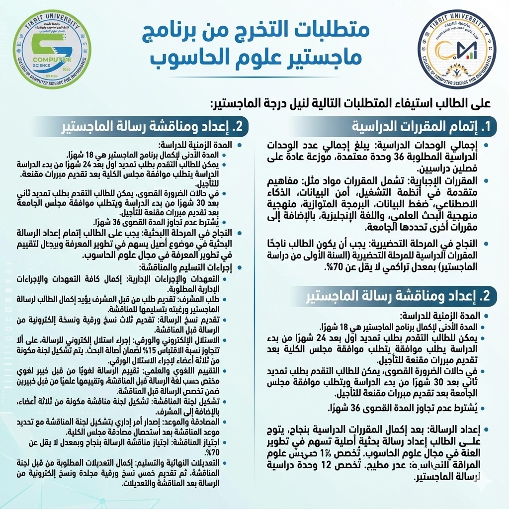 1. تقديم تعليم أكاديمي متميز في علوم الحاسوب، يستند إلى أحدث التطورات التكنولوجية والمعايير الأكاديمية العالمية، بما يعزز الكفاءة العلمية والعملية للطلبة.