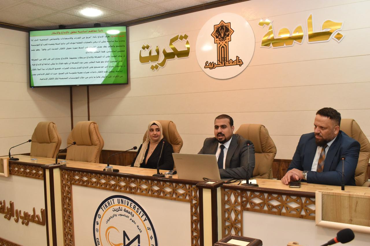 وخلال الزيارة شاركت اللجنة في ندوة علمية نظمتها الكلية بالتعاون مع مركز التعليم المستمر بعنوان “دور الحاضنات التكنولوجية التابعة للجامعات في تعزيز الابداع وتحقيق ريادة الاعمال للمشاريع المحتضنة”، حيث تناولت الندوة التي حاضر فيها م.م. همام نعمة حسين محاور متعددة :