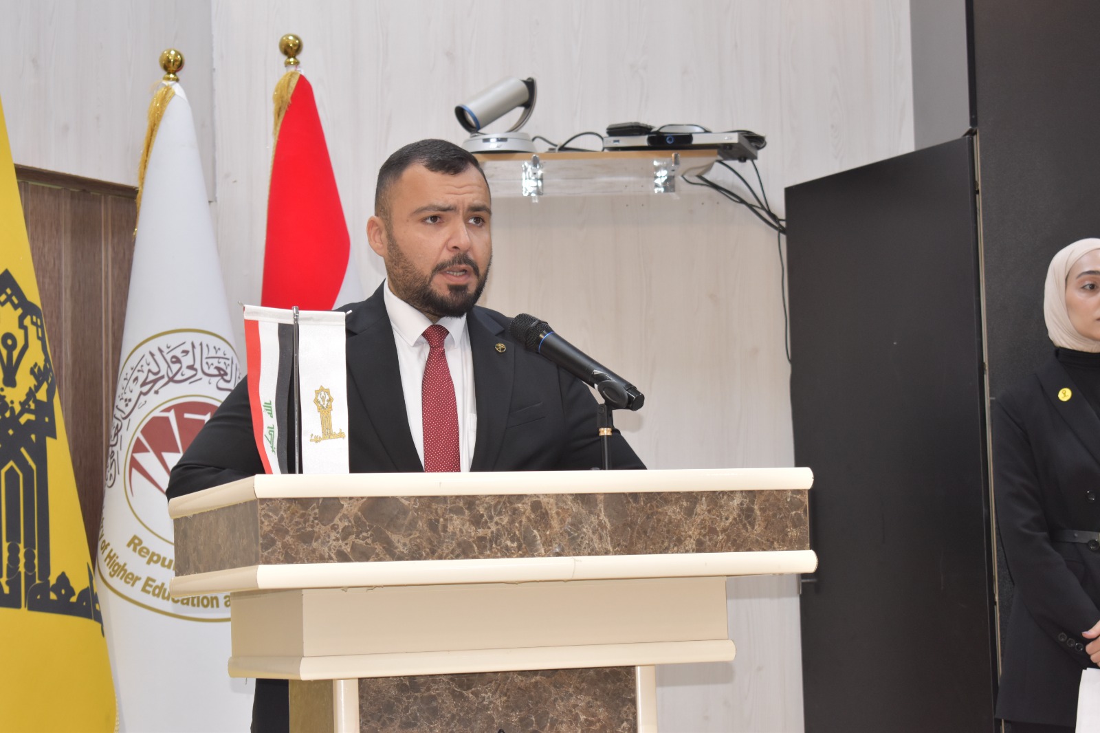 ثم القى عميد الكلية الاستاذ المساعد الدكتور محمود ماهر صالح كلمةً تحدث فيها عن ما تبذله الكلية من جهود كبيرة لرفد الجامعة وسوق العمل بخريجين في تخصص علوم الحاسوب والرياضيات وقد اثنى على الجهد المبذول من قبل ابنائه الطلبة وتعاونهم مع اساتيذهم والتزامهم بكافة التعليمات .