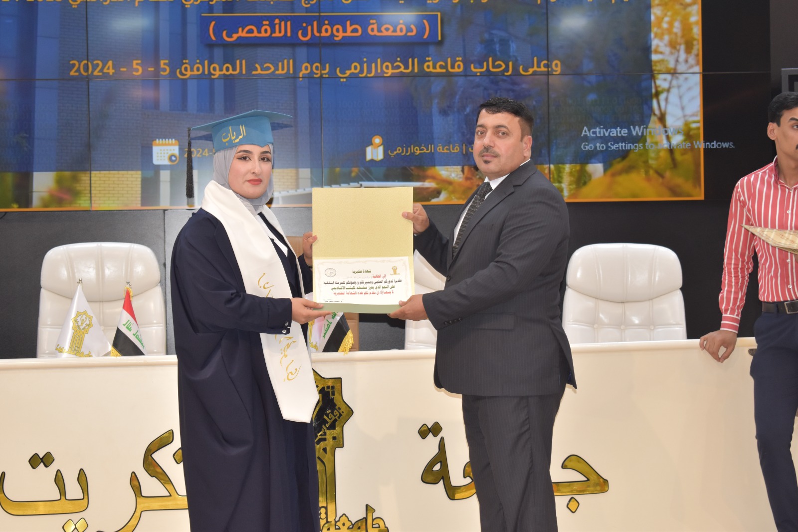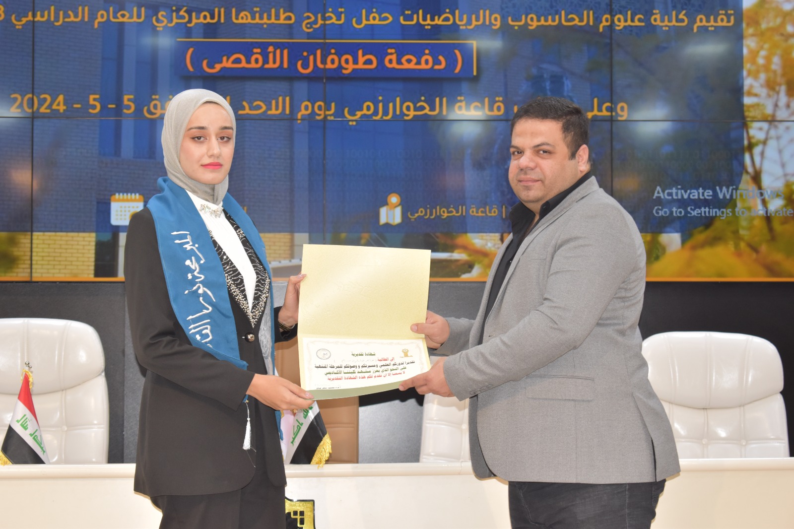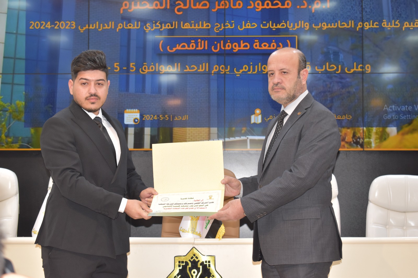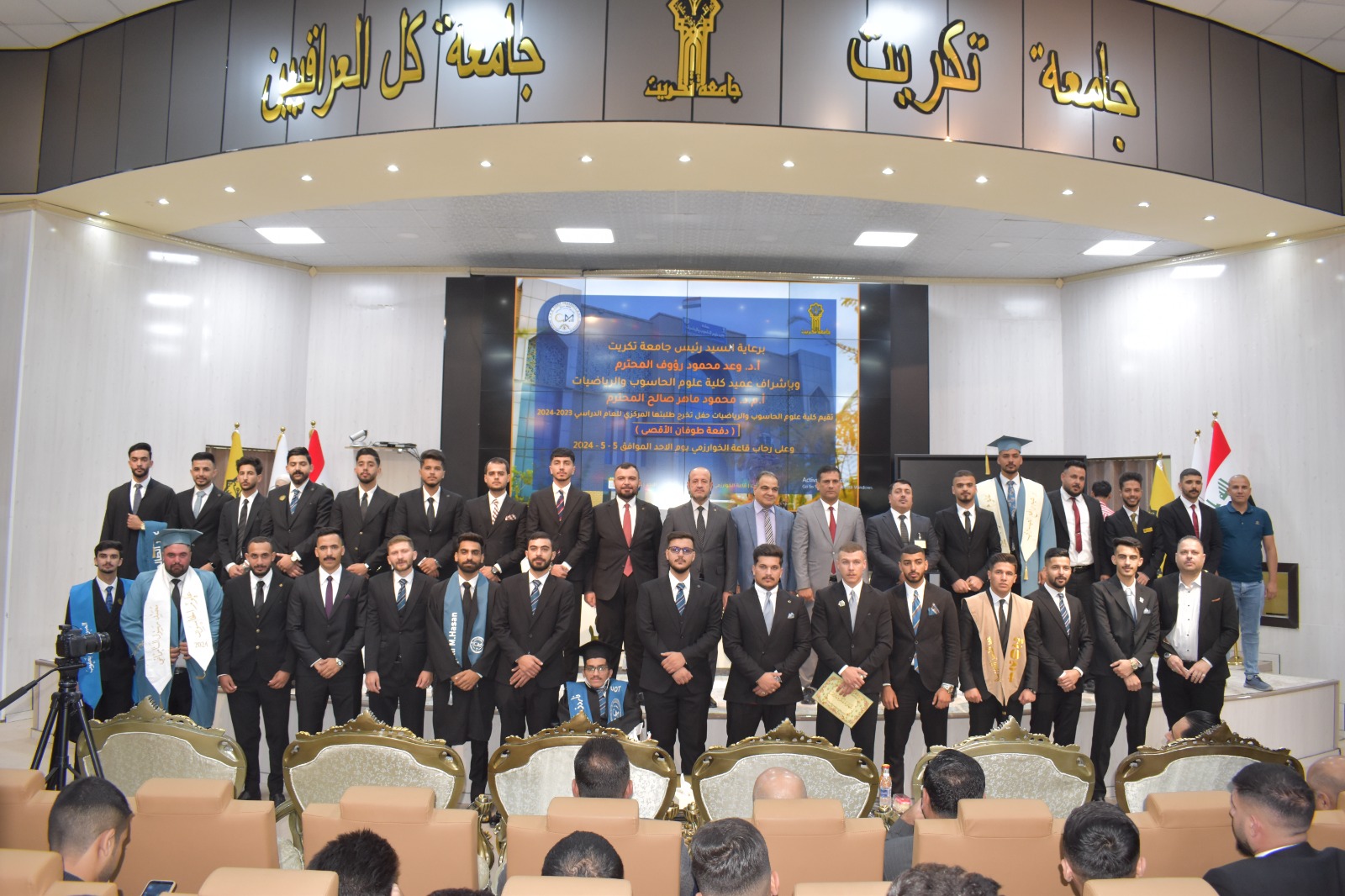 برعاية وحضور الاستاذ الدكتور وعد محمود رؤوف المحترم رئيس جامعة تكريت وإشراف الاستاذ المساعد الدكتور محمود ماهر صالح عميد كلية علوم الحاسوب والرياضيات احتضنت قاعة الخوارزمي اليوم الاحد الموافق 5-5-2024 حفل تخرج طلبة كلية علوم الحاسوب والرياضيات الدفعة 2023-2024 دفعة طوفان الاقصى .
