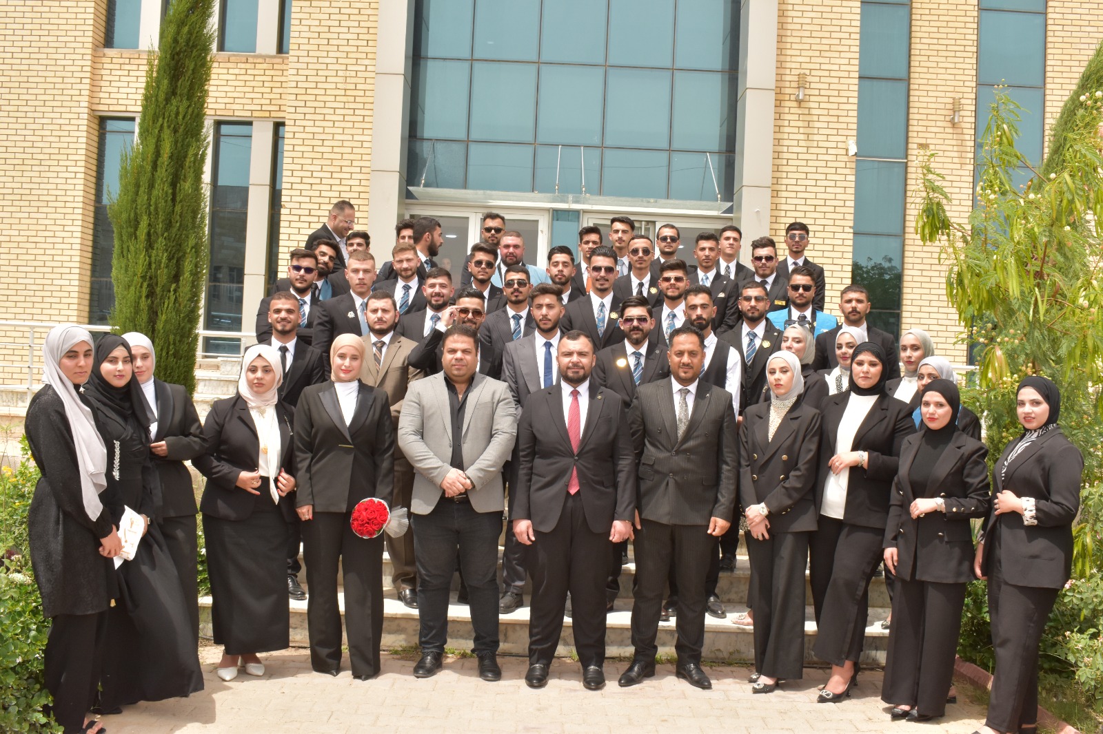 وفي ختام فعاليات الحفل تم التقاط صورة جماعية وتوزيع دروع وشهادات تقديرية للطلبة الاوائل في الكلية تثميناً لإجتهادهم ومثابرتهم .