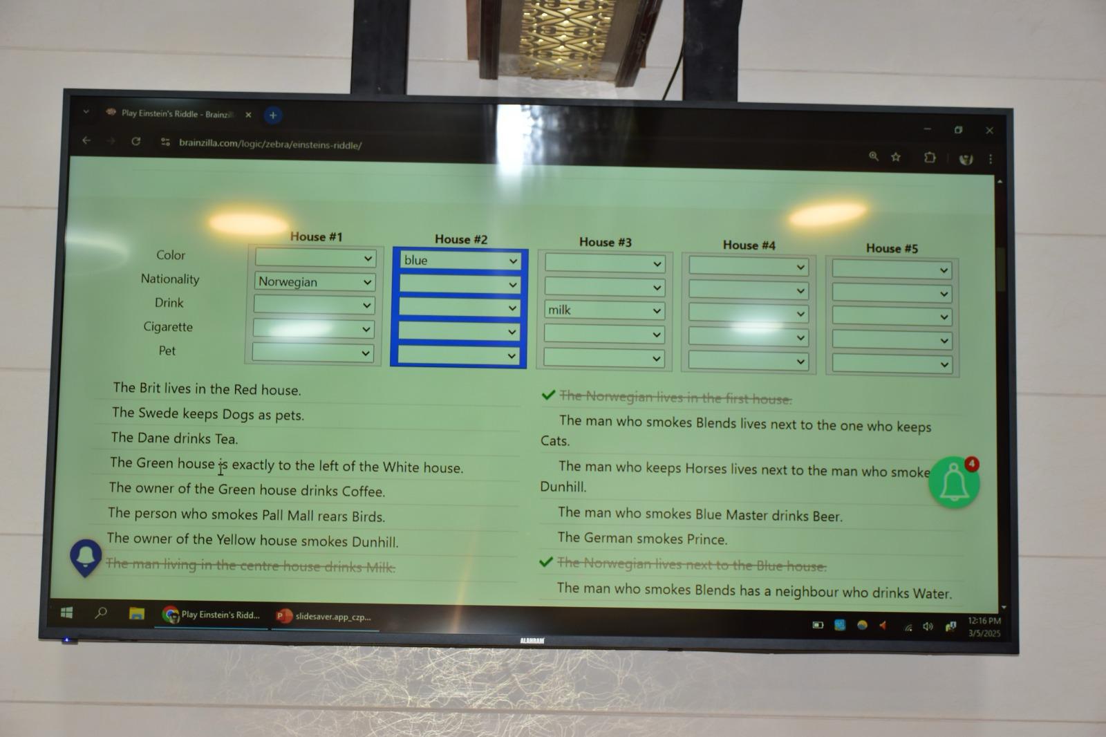 ثانيًا: تطبيق عملي - حل لغز البازل المكون من 5 منازل تقديم اللغز والقواعد الأساسية لحله.