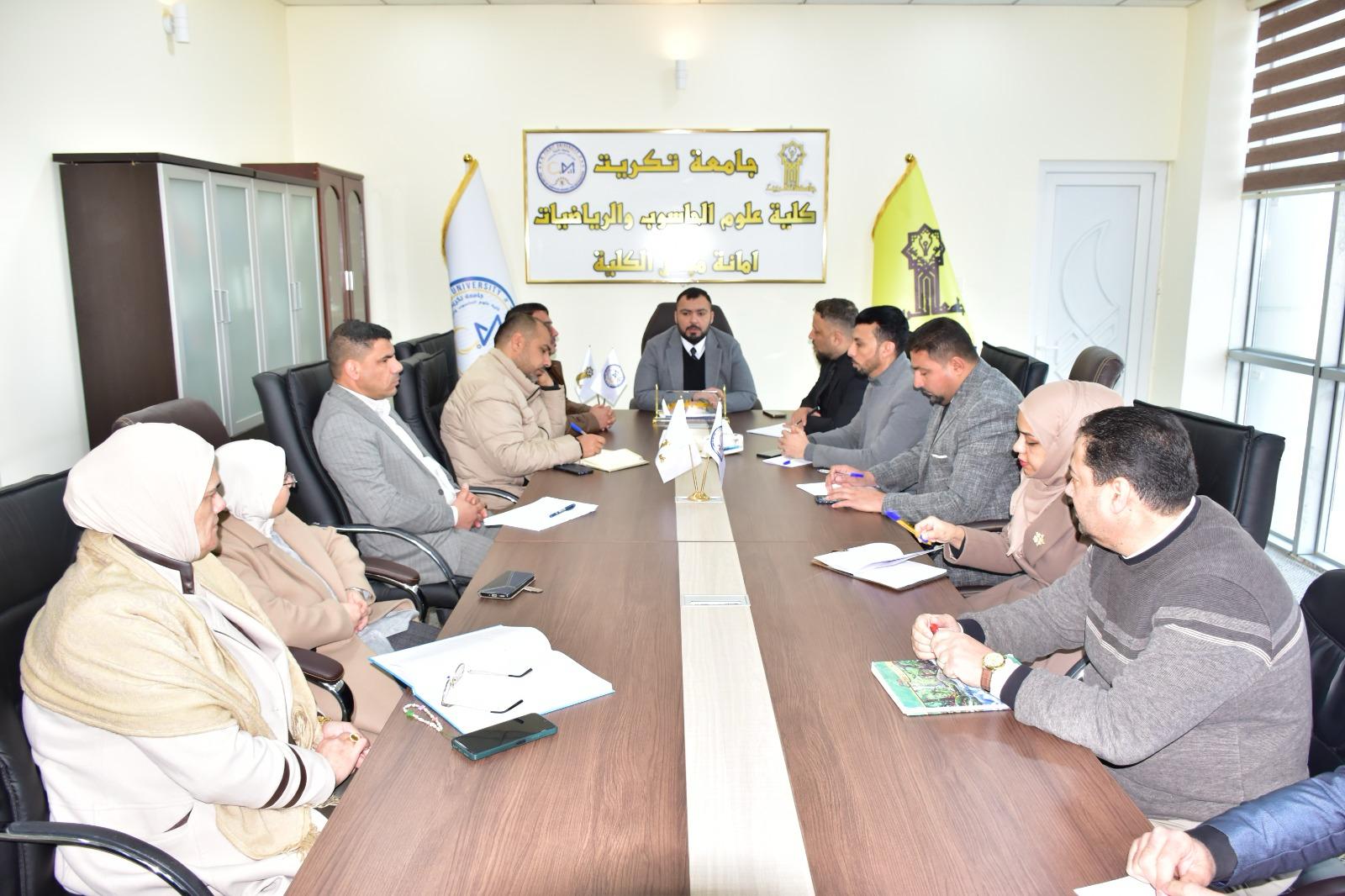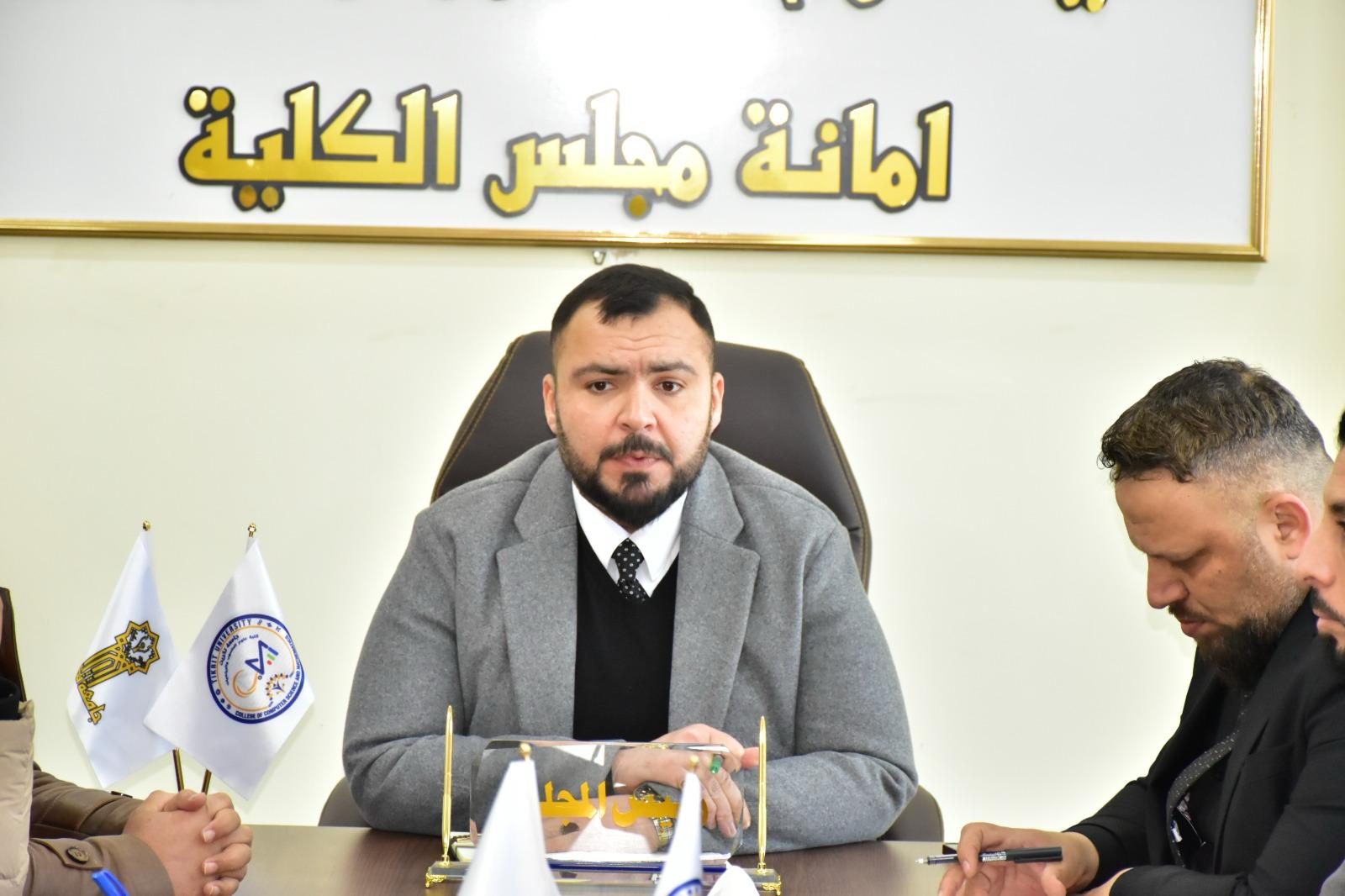 اجتمع الاستاذ المساعد الدكتور محمود ماهر صالح المحترم عميد الكلية اليوم الموافق 26/2/2025 بمسؤولي الشعب الادارية في الكلية ، حيث افتتح السيد العميد الجلسة بكلمة ترحيبية اشاد فيها بالجهود المبذولة من قبل مسؤولي الشعب في الكليه ، مؤكداً على ضرورة التعاون بين الجميع لتحقيق اعلى مراتب النجاح في العمل وإظهار الكلية بمستوى يليق بها و بجامعة تكريت وفق السياق القانوني وتذليل الصعوبات امام المراجعين والطلبة في سبيل إنجاح العام الدراسي الحالي ، و قدم السادة مسؤولي الشعب تقرير مفصل عن الانشطة والانجازات التي قدمتها الشعب خلال الثلاثة اشهر الماضية ورسم خطة مستقبلية واضحة لثلاثة اشهر قادمة ، من جانبه ابدى الحاضرون استعدادهم الكامل بالعمل بالتوجيهات و القوانين ،