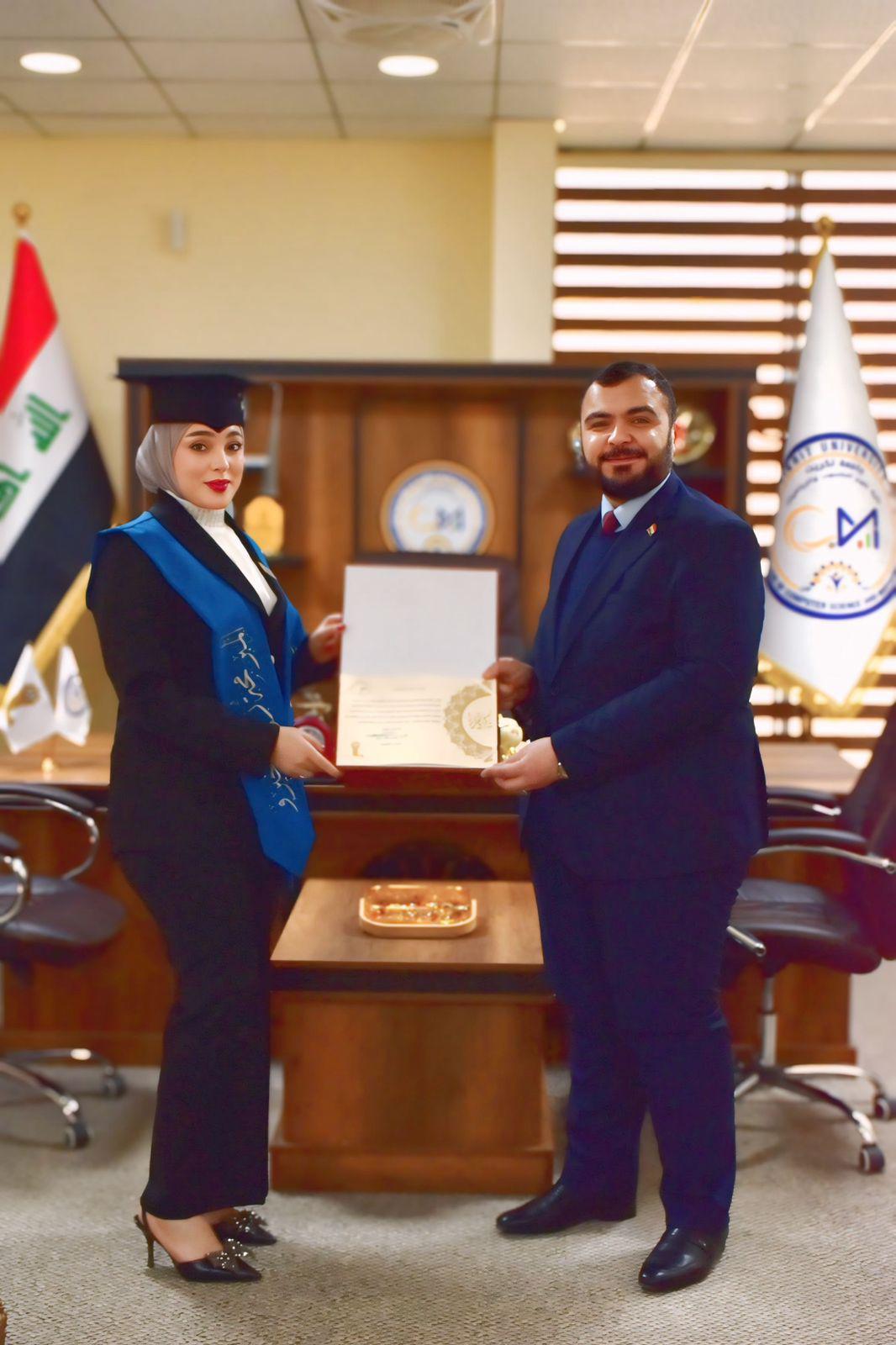 وقام الأستاذ المساعد الدكتور محمود ماهر صالح المحترم عميد الكلية بتقديم كتب الشكر تكريماً لجهود الطلبة المتميزين، مشيداً بمثابرتهم واجتهادهم، ومؤكداً أن هذا التكريم يعكس حرص الكلية على دعم طلابها وتحفيزهم نحو تحقيق المزيد من النجاحات العلمية. كما تمنى لهم دوام التوفيق في مسيرتهم الدراسية والمهنية.