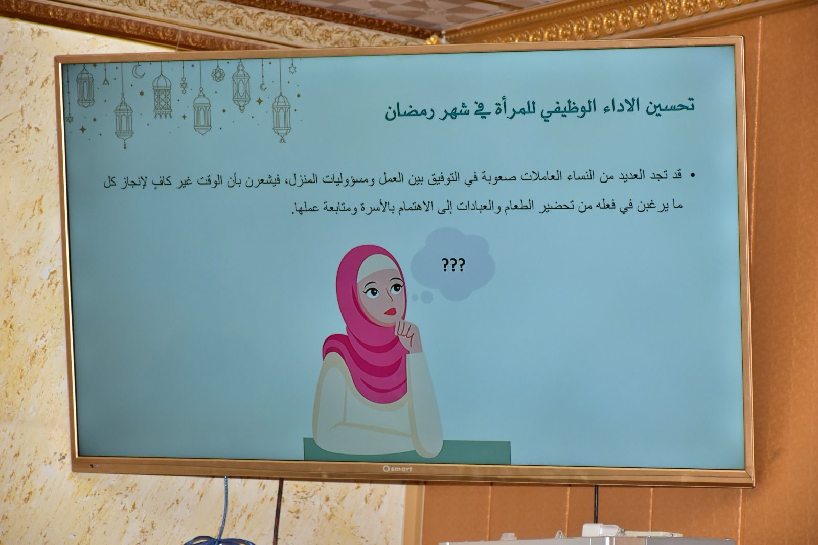 تناولت الندوة أهم الأساليب والاستراتيجيات التي تساعد المرأة على تحسين أدائها الوظيفي خلال شهر رمضان، مع التركيز على إدارة الوقت، تعزيز الإنتاجية، وتحقيق التوازن بين العمل والحياة الشخصية. كما تمت مناقشة أهمية دور وحدة شؤون المرأة في كليتنا بالتعاون مع مركز التعليم المستمر في دعم المرأة العاملة وتقديم الإرشادات العملية لضمان تحقيق أقصى استفادة خلال الشهر الفضيل.