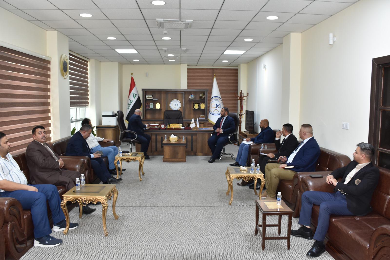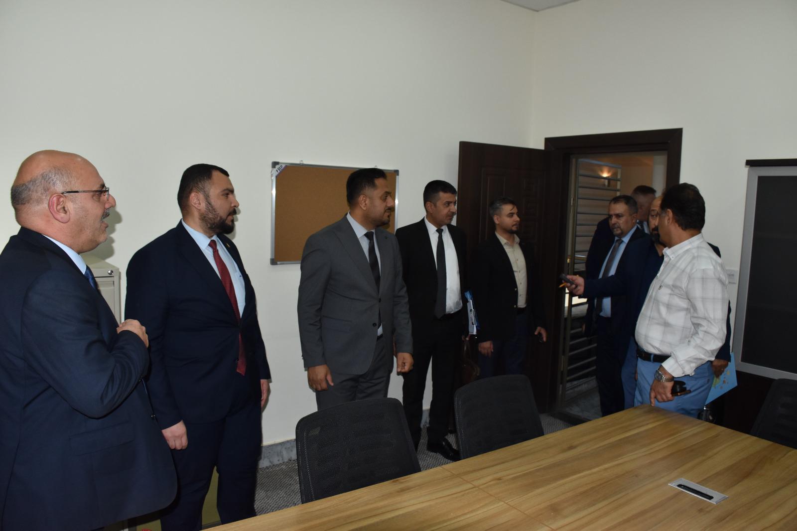 وكان في استقبال اللجنة الوزارية السيد عميد الكلية الأستاذ المساعد الدكتور محمود ماهر صالح المحترم وبحضور السادة معاوني العميد للشؤون العلمية والإدارية، بالإضافة إلى عدد من رؤساء الأقسام والتدريسيين. وقد استهلت اللجنة زيارتها بلقاء تعريفي استعرضت فيه عمادة الكلية رؤيتها ورسالتها وأهدافها من استحداث قسم الذكاء الاصطناعي، وأهميته في دعم خطط الجامعة نحو التميز الأكاديمي والبحثي.