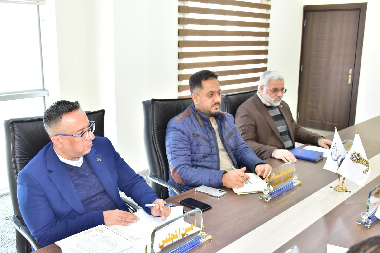 عقد مجلس كلية علوم الحاسوب والرياضيات جلسته الاعتيادية (الخامسة عشر) المفتوحة للعام الدراسي 2024-2025 اليوم الثلاثاء الموافق 24-2-2025 بحضور جميع اعضاء المجلس كافة ، حيث افتتح الأستاذ المساعد الدكتور محمود ماهر صالح عميد الكلية الجلسة بكلمة ترحيبية أشاد فيها بجهود الجميع، هذا وقد ناقش المجلس عدداً من القضايا في جدول أعماله .