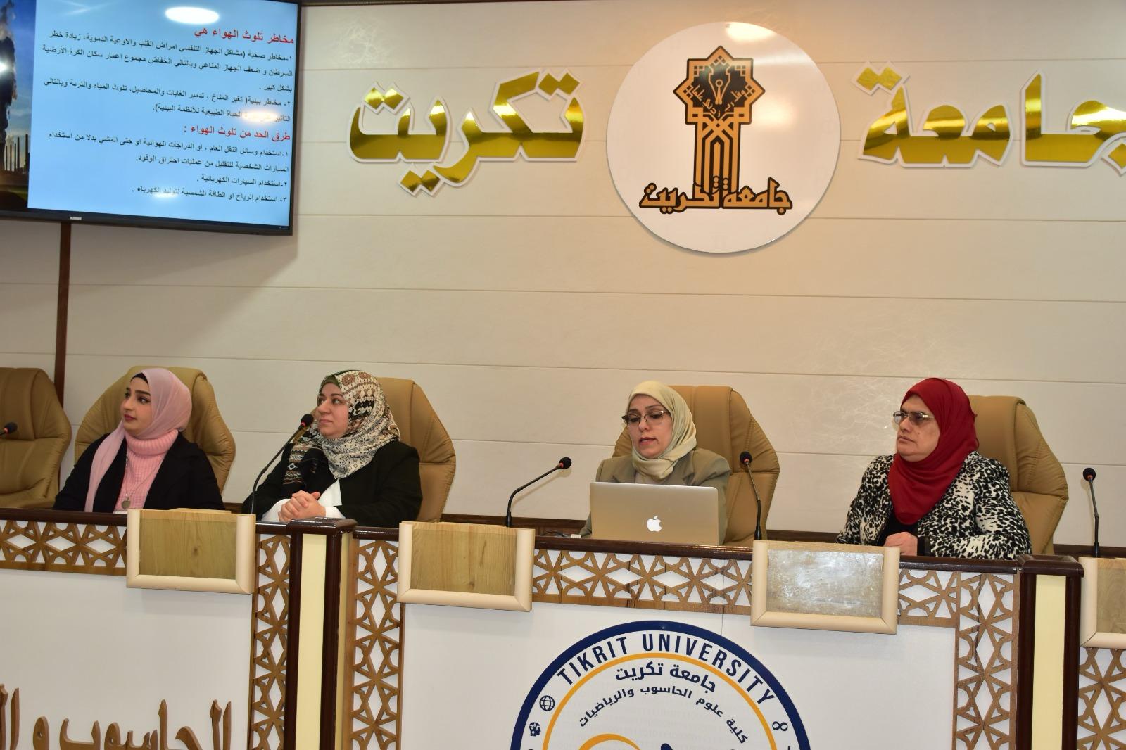 برعاية الاستاذ الدكتور وعد محمود رؤوف المحترم رئيس جامعة تكريت وبإشراف الاستاذ المساعد الدكتور محمود ماهر صالح المحترم عميد كلية علوم الحاسوب والرياضيات واشراف الاستاذ المساعد الدكتور سياف عبدحسين المحترم مدير مركز التعليم المستمر ، اقامت كليتنا ندوة بعنوان:( نحو عراق اكثر خضرة : استراتيجيات مواجهة التلوث البيئي)اليوم الموافق الاثنين 10- 3-2025 ،من قبل المحاضرون: