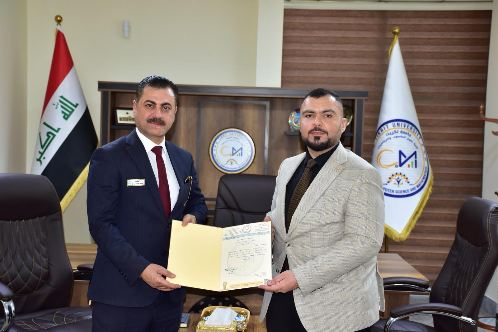 من جانبه، قدم السيد عميد كلية علوم الحاسوب والرياضيات كتب شكر وتقدير للسادة المحاضرين تثميناً لجهودهم المميزة، وعرفاناً بعطائهم العلمي وإخلاصهم في أداء مهامهم الأكاديمية، وما قدموه من محاضرة توعوية أسهمت في رفع مستوى اداك الطلبة بهذه الافة الفتاكة . متمنياً لهم المزيد من العطاء والتميّز العلمي .