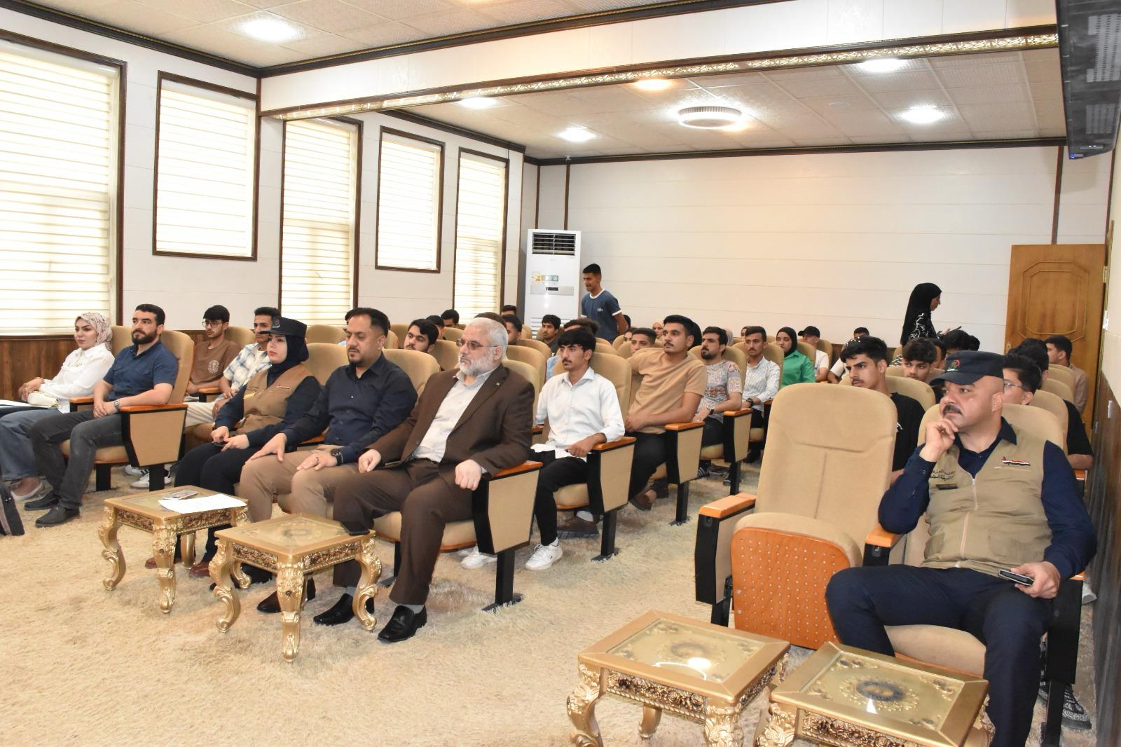 من جانبه عبّر السيد عميد الكلية، الأستاذ المساعد الدكتور محمود ماهر صالح المحترم، عن تقديره واعتزازه بالجهود القيمة التي بذلها السادة المحاضرون في تنظيم هذه الندوات التوعوية المثمرة، وذلك من خلال تقديم كتب شكر وتقدير عرفاناً بعطائهم المتميز ومساهمتهم الفاعلة في نشر الوعي وتعزيز الثقافة الأكاديمية داخل الكلية.