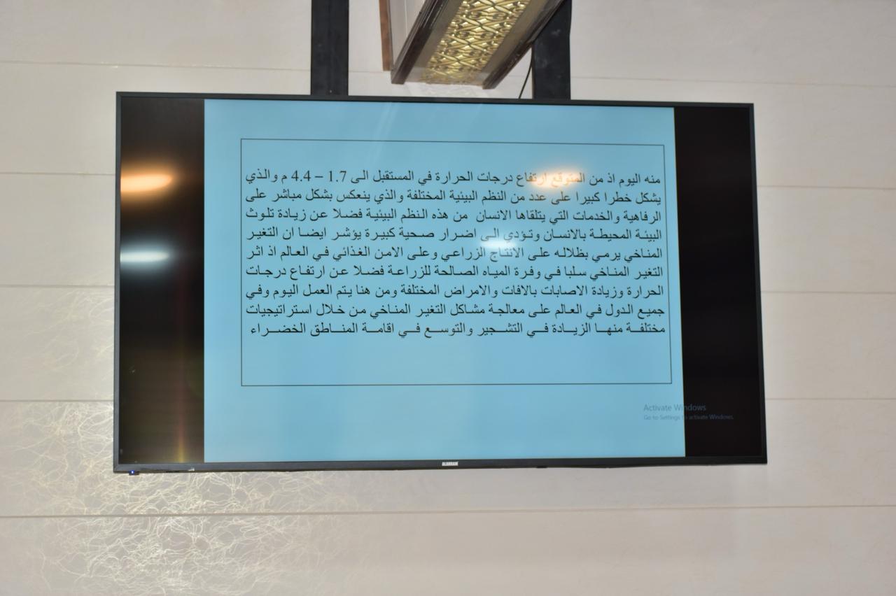 من جانبه قدم السيد عميد الكلية كتاب شكر وتقدير للمحاضرين تثميناً لجهودهم العلمية على اقامة مثل هكذا ندوات توعوية مثمرة ، كما تسعى كليتنا الى ترسيخ مفهوم الاستدامة البيئية من خلال مبادرات علمية وتوعوية تسلط الضوء على اهمية التشجير في تحسين جودة الحياة.