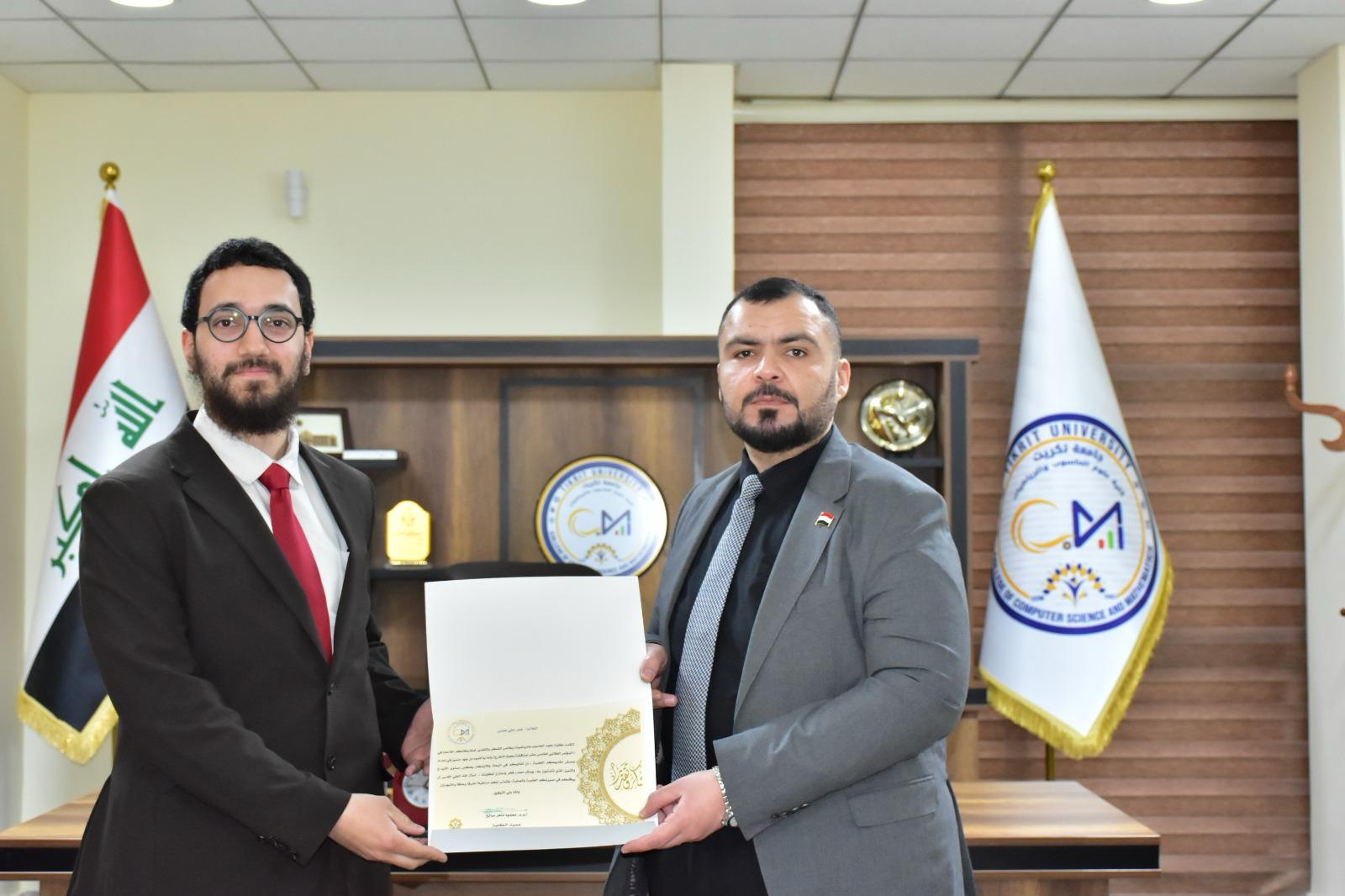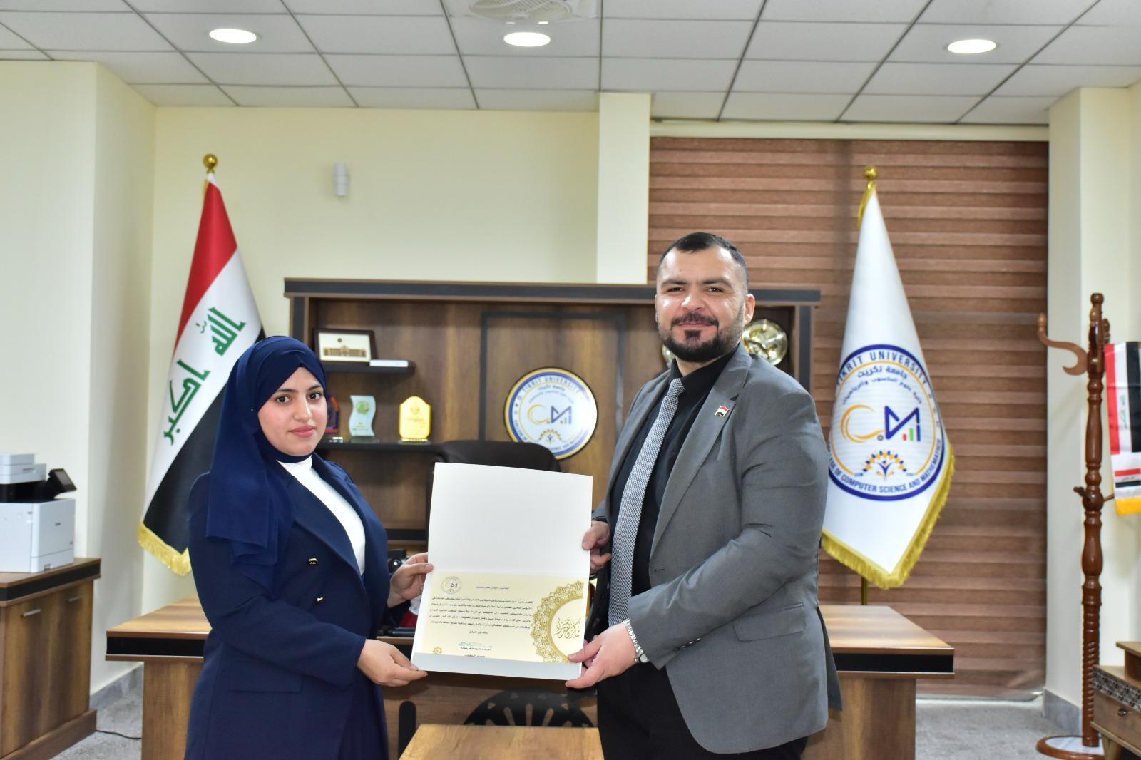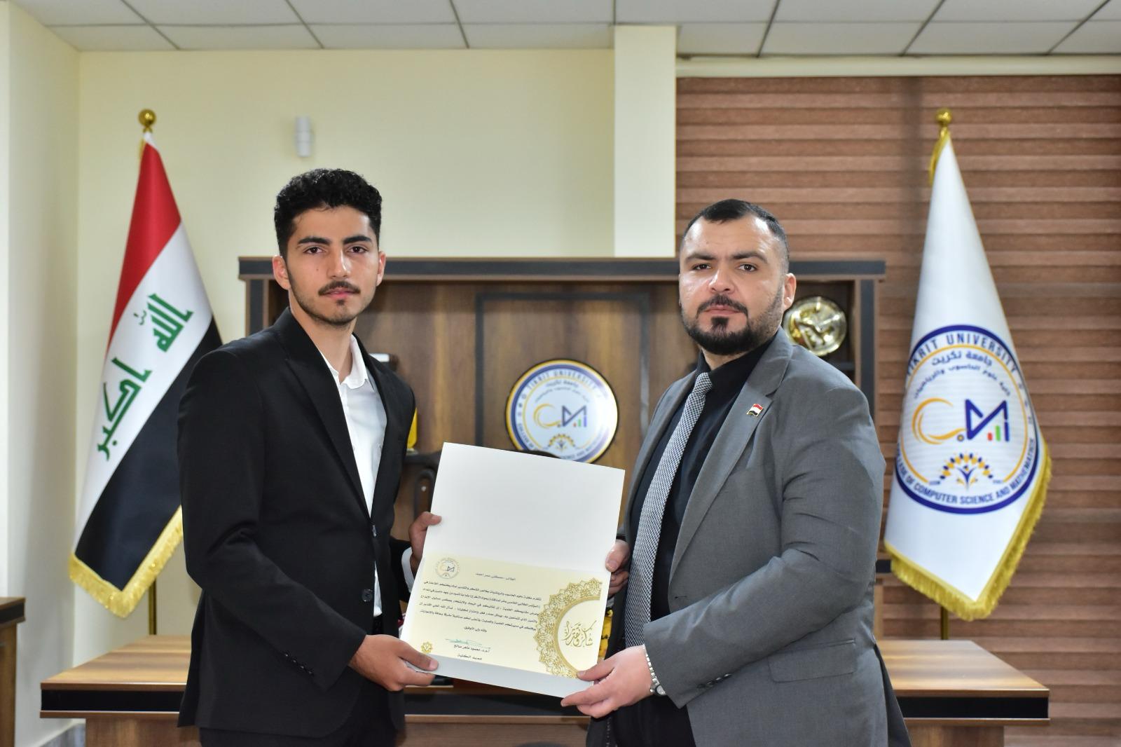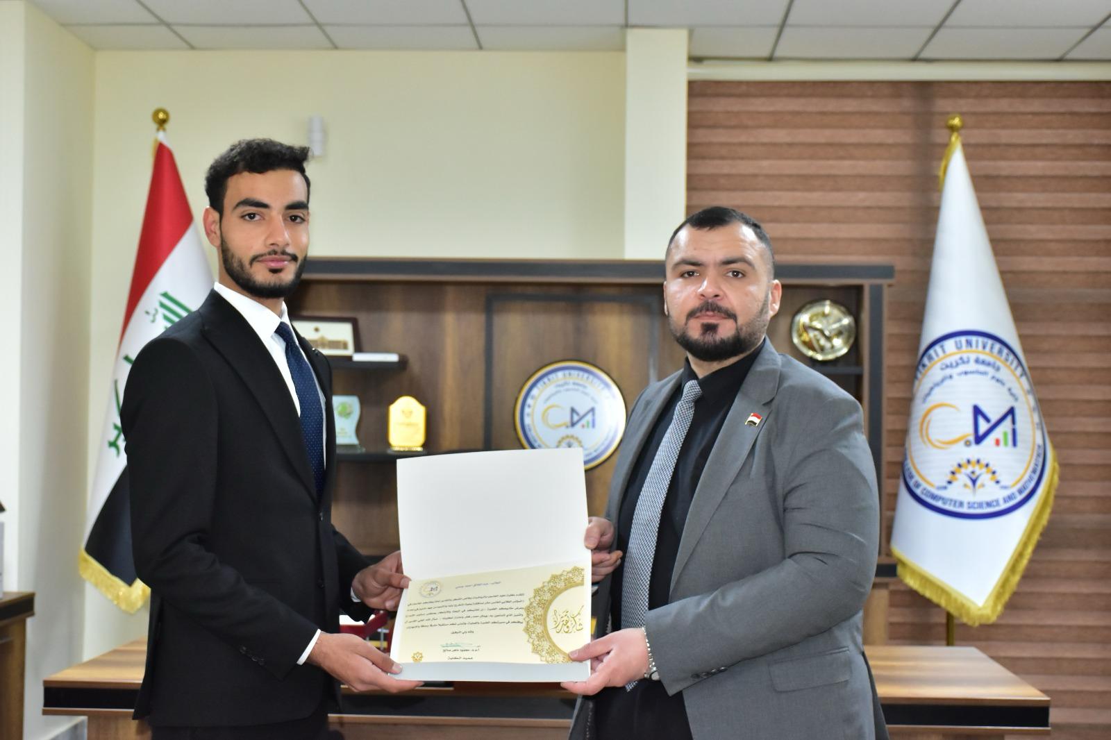 في إطار دعم التميّز الأكاديمي وتحفيز الطلبة على الإبداع والابتكار، كرّم الأستاذ المساعد الدكتور محمود ماهر صالح المحترم عميد كلية علوم الحاسوب والرياضيات، اليوم الأربعاء الموافق 19 آذار 2025، مجموعة من طلبة الكلية لمشاركتهم المتميزة في المؤتمر الطلابي لمشاريع التخرج، والذي أُقيم في رحاب الكلية.