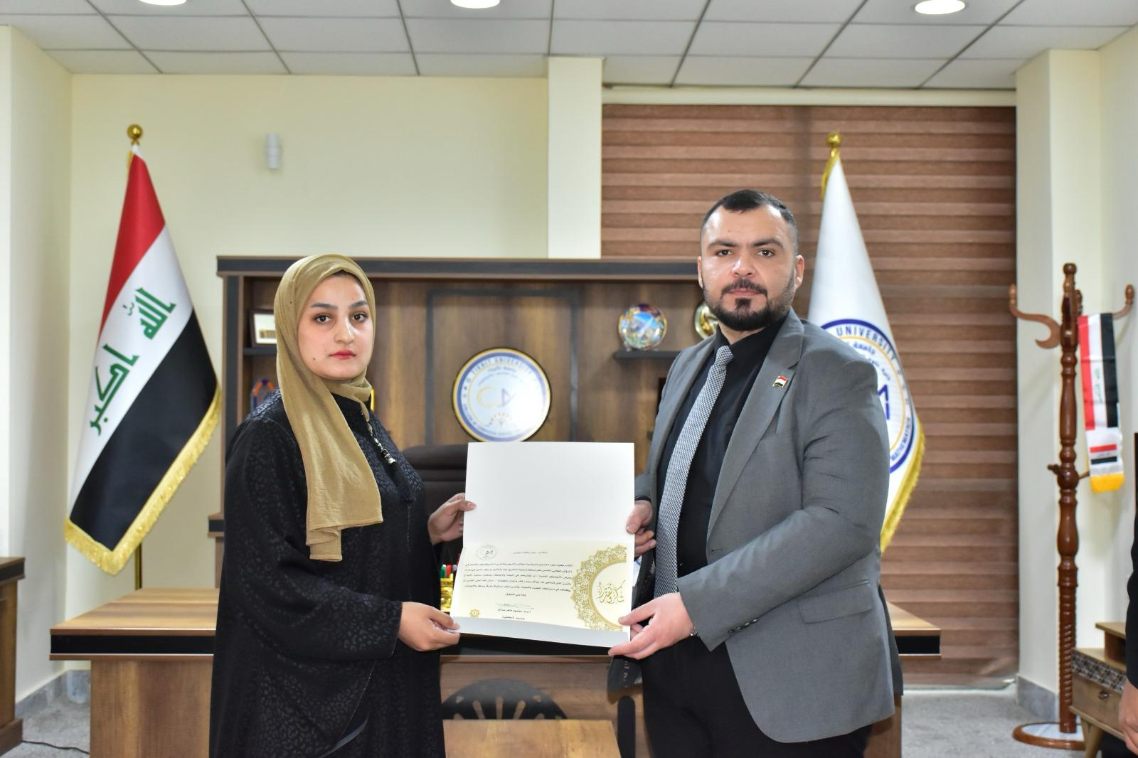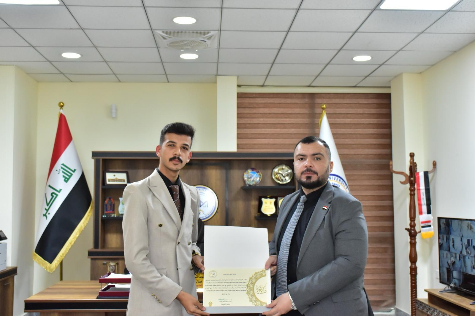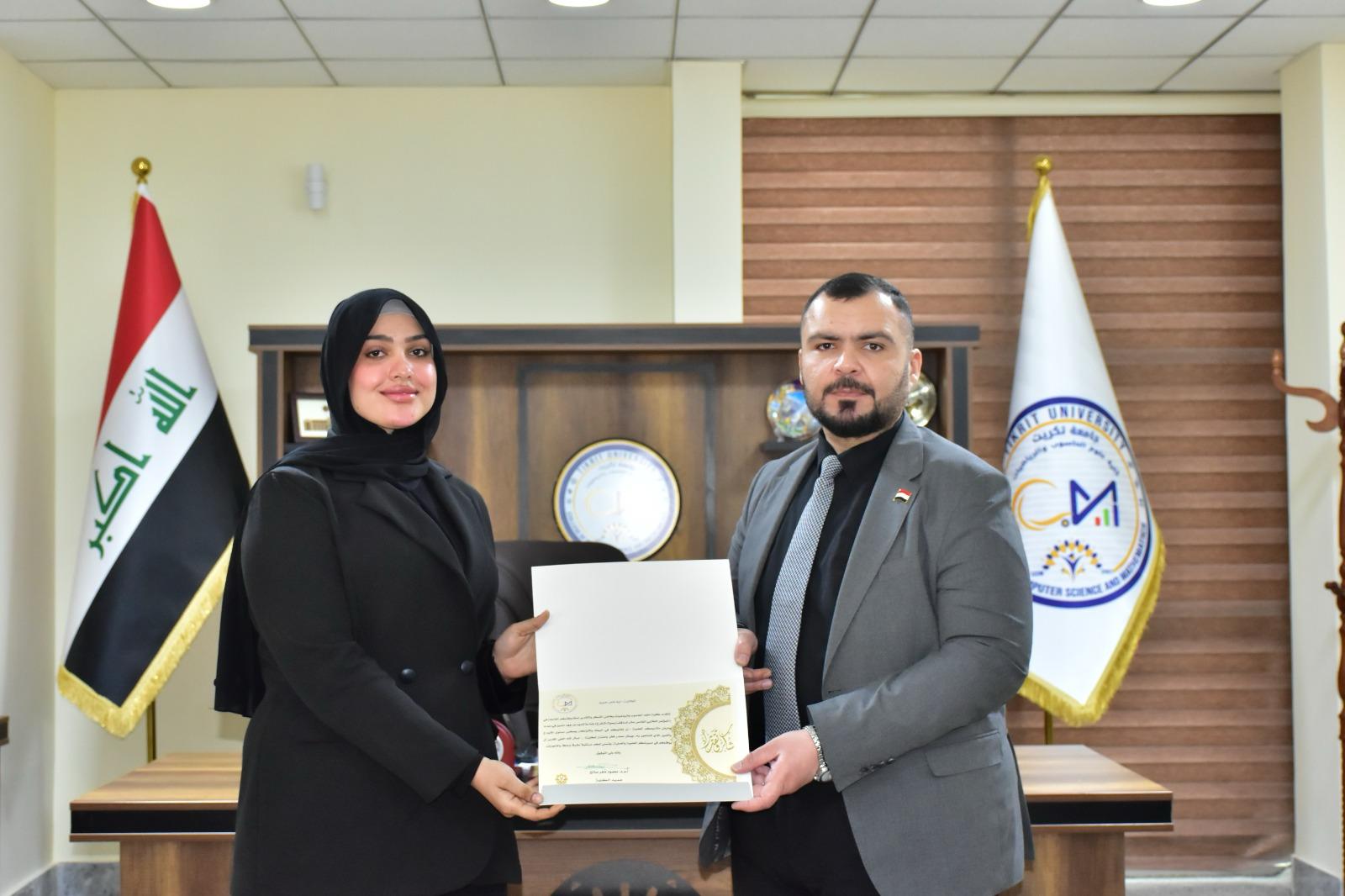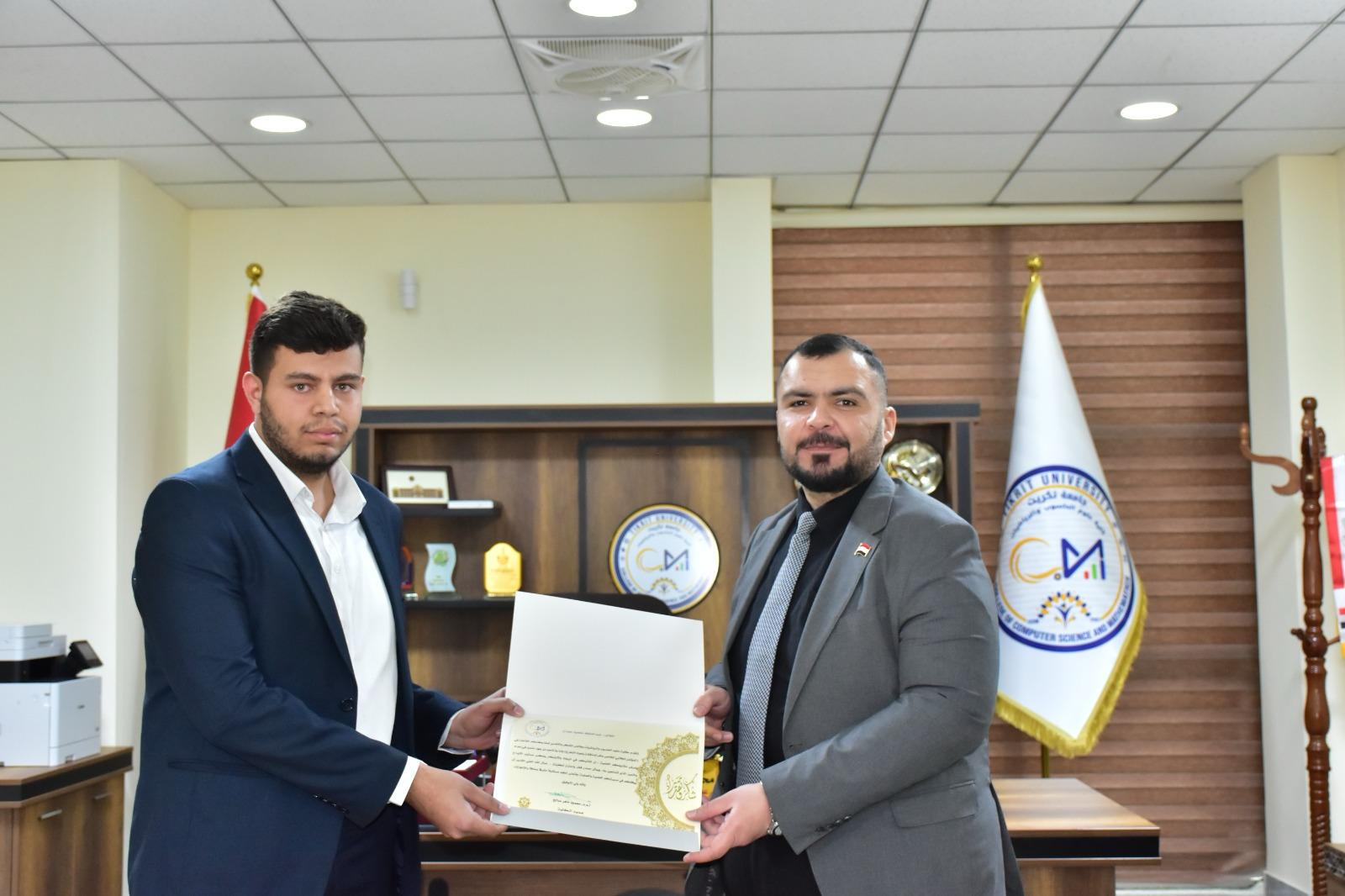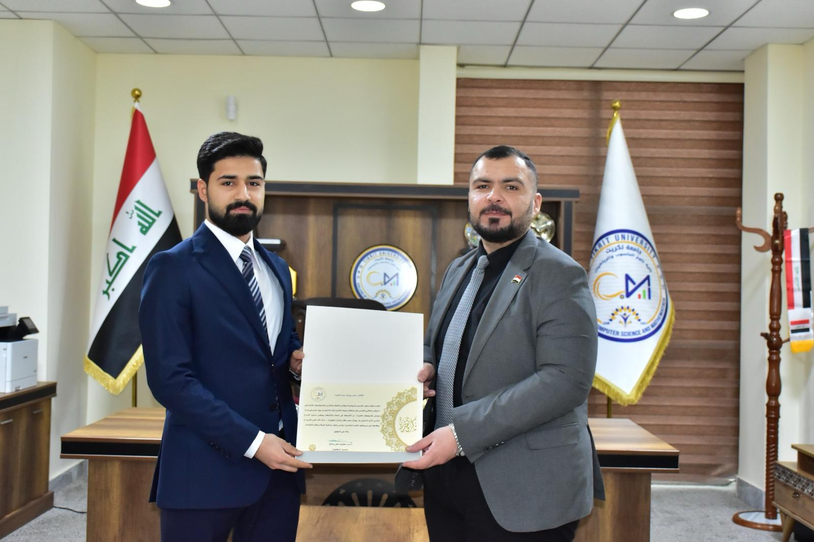 في إطار دعم التميّز الأكاديمي وتحفيز الطلبة على الإبداع والابتكار، كرّم الأستاذ المساعد الدكتور محمود ماهر صالح المحترم عميد كلية علوم الحاسوب والرياضيات، اليوم الأربعاء الموافق 19 آذار 2025، مجموعة من طلبة الكلية لمشاركتهم المتميزة في المؤتمر الطلابي لمشاريع التخرج، والذي أُقيم في رحاب الكلية.