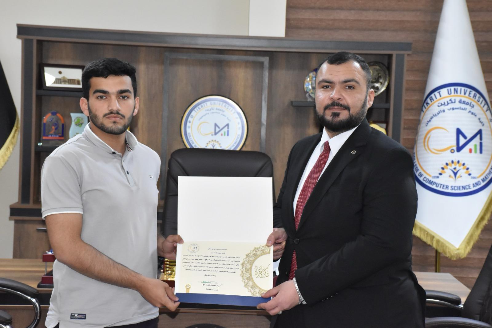 برعاية الأستاذ الدكتور وعد محمود رؤوف المحترم رئيس جامعة تكريت، وبإشراف الأستاذ المساعد الدكتور محمود ماهر صالح المحترم عميد كلية علوم الحاسوب والرياضيات، أُعلن عن نتائج مسابقة مشاريع طلبة المرحلة الأولى في مادة “تصميم مواقع الإنترنت”، والتي جاءت تحت عنوان: “لمسات أولية في تصميم المواقع"”.